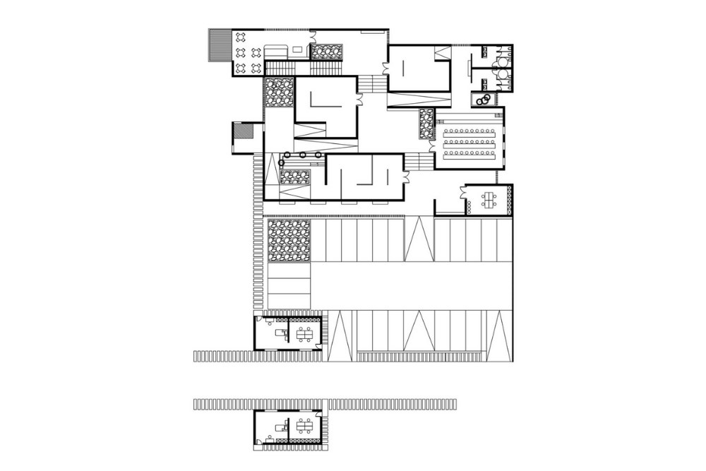 İdari ve Operasyonel Bloklar: İç avlular etrafında düzenlenen ofisler, bilgilendirme odaları ve personel alanları.