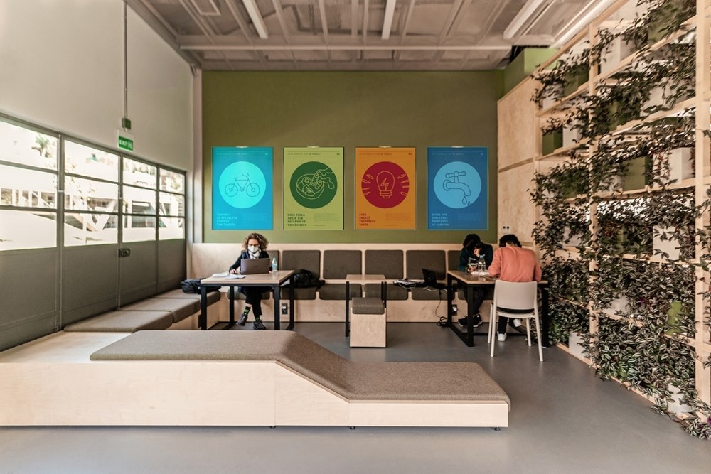 Her biri aslında fabrikanın makineleri olan yapıların içinde çalışırken bir yandan mümkün olan en az noktada yapıya dokunma kaygısı ile yapının mevcut bütünlüğünü ve estetiğini bozmama çabası gösterilirken bir yandan da esnek ve dönüştürülebilir mekanlar üretilmesi hedeflenmiştir. Binaların içlerindeki fabrika döneminden kalan yapısal elemanlar, makineler, makine kaideleri ve günümüze ulaşmış tüm parçaları tasarıma dahil edilmiştir. Bu önceliklerle birlikte doğal ve dönüştürülebilir malzeme kullanımı ön planda tutulmuştur.