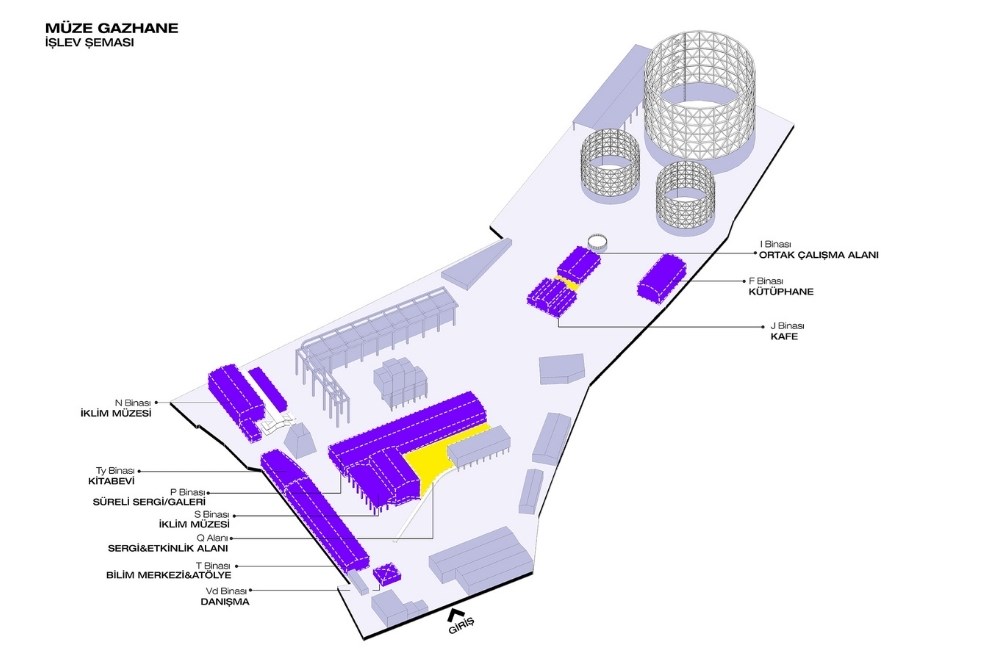 İşlev planlaması yapılırken binaların fabrika sürecindeki görevleri ve birbirleriyle olan ilişkileri, restorasyon kararları ve günümüz ihtiyaçları belirleyici kriterler olmuştur. Bu anlamda müze binaları, süreli sergi alanı, bilim merkezi ve atölye, kitabevi ve müze mağaza binaları bir arada kurgulanarak bir etkinlik adası oluşturulmuştur ve "Müze Binaları" olarak işlev şemasına katılmıştır. Diğer taraftan kütüphane, ortak çalışma alanları ve kafe bir arada kurgulanmış ve "Kütüphane Binaları" olarak işlev şemasına katılmıştır.