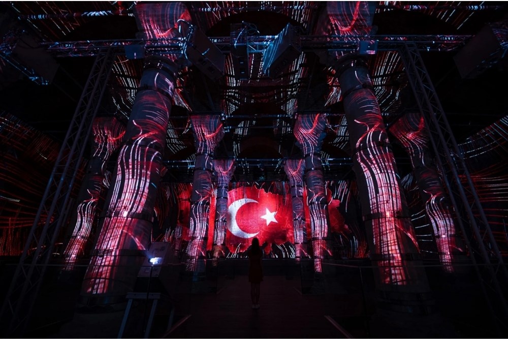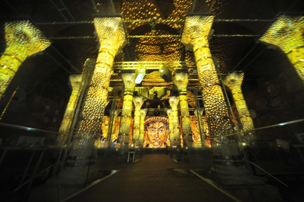 İzleyicilere bu yenilikçi sergileme yöntemini sunarken koruma ve kimlik başlıklarından ödün vermeden ilerlendi. 29 adet 10.000 ansi lümenli projeksiyon cihazını truss sistemi ile yerleştirip tarihi dokuya dokunmadan 360°’lik dev bir ekran oluşturuldu. Geçmişin günümüz ile ilişkisi yansıtılan bu dev ekranda eski yeni birleşimini, dönüşümü ve geleneksellikten geleceğe olan bir adım olarak görmek amaçlandı.