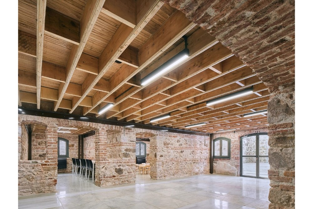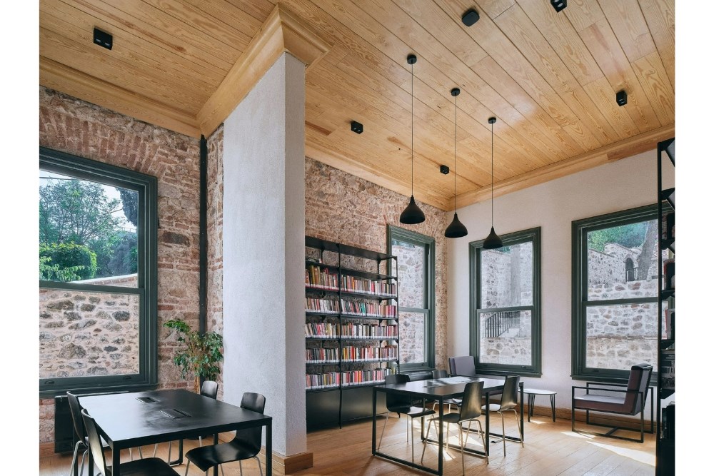 Büyükada'da yer alan Taş Mektep, 19. yüzyılda inşa edilmiş olup, Rum Ortodoks Patriği Sophronius’un yazlık konutu ve sonrasında bir Türk okulu gibi çeşitli işlevler üstlenmiştir. On yıllarca kullanılmayan yapı, 2021 yılında gerçekleştirilen bir restorasyon projesiyle yeniden hayata kazandırılmıştır. Restorasyon sürecinde, yapının tarihi karakteri korunarak kütüphane, sergi alanı ve atölye gibi yeni kamusal işlevler eklenmiştir. Proje, orijinal malzemelerin korunmasına, modern unsurların entegrasyonuna ve kolektif kültürel etkinlikler ile deneyimlere olanak tanıyacak mekânların oluşturulmasına odaklanmıştır. Ayrıca yapının çevresindeki peyzajla olan ilişkisine de titizlikle dikkat edilmiştir.