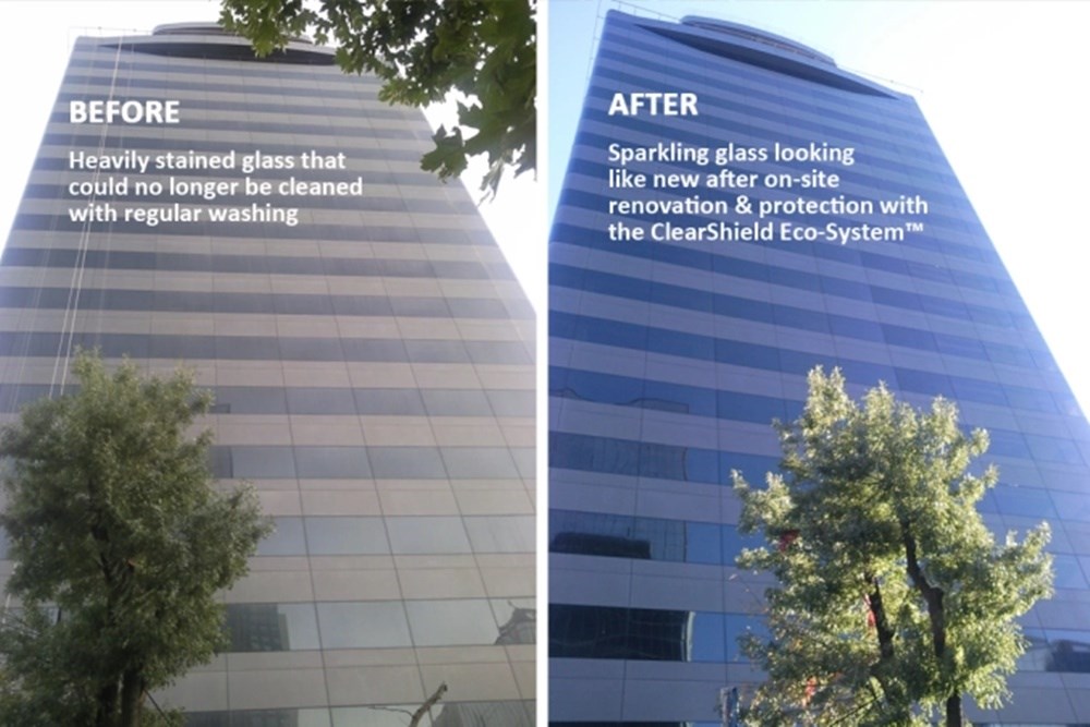 Yağmur, hava kirliliği, egzoz gazı gibi bir çok etmen zamanla camlarda birikme ve kirlilik yapar. Bu kirliliği temizlemek çok zor ve neredeyse imkansızdır. Bu kapsamda Maslak WindowIST dış cephe camlarına Kozmos Cam tarafından ClearShield Eco-Sistem™ uygulaması yapılmıştır.