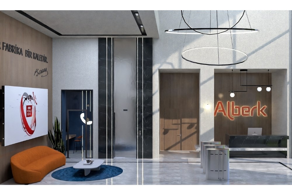 Alberk Fabrika Binası, ormanın kıyısında, doğa ile iç içe bir atmosferde, araziye ve yola paralel bir noktada konumlandırılmıştır. Bina, iki katlı doğrusal bir cephe ve dikey giriş alanı birleşimiyle iki kütleden oluşmaktadır. Cephe üzerindeki dikey ve yatay elemanların oluşturduğu cam cephe bu çizgiselliği desteklemektedir. Üretim ve ofis alanları için seçilen farklı malzemelerin bina kabuğunda uygulanmasıyla, farklı işlevlerin dışarıdan okunabilmesi amaçlanmıştır.