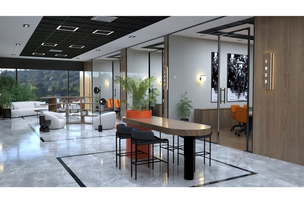 Yapının cephesinde yaratılan karakter iç mekâna taşınmıştır. Girişin yüksek tavanlı galerisi sizi karşılar. Ahşap giydirmeler ve aydınlatma elemanlarıyla zenginleştirilen galeri, bir yandan mekâna derinlik kazandırırken bir yandan da binanın yönetim katı ile de görsel bir bağlantı kurar.