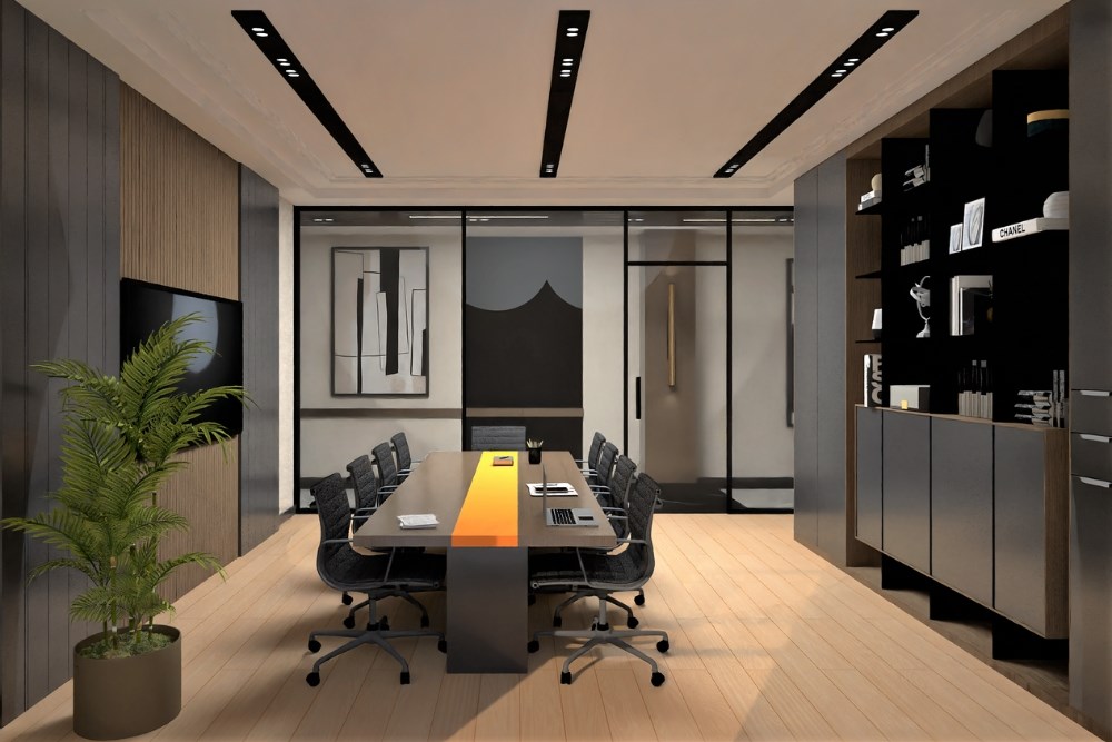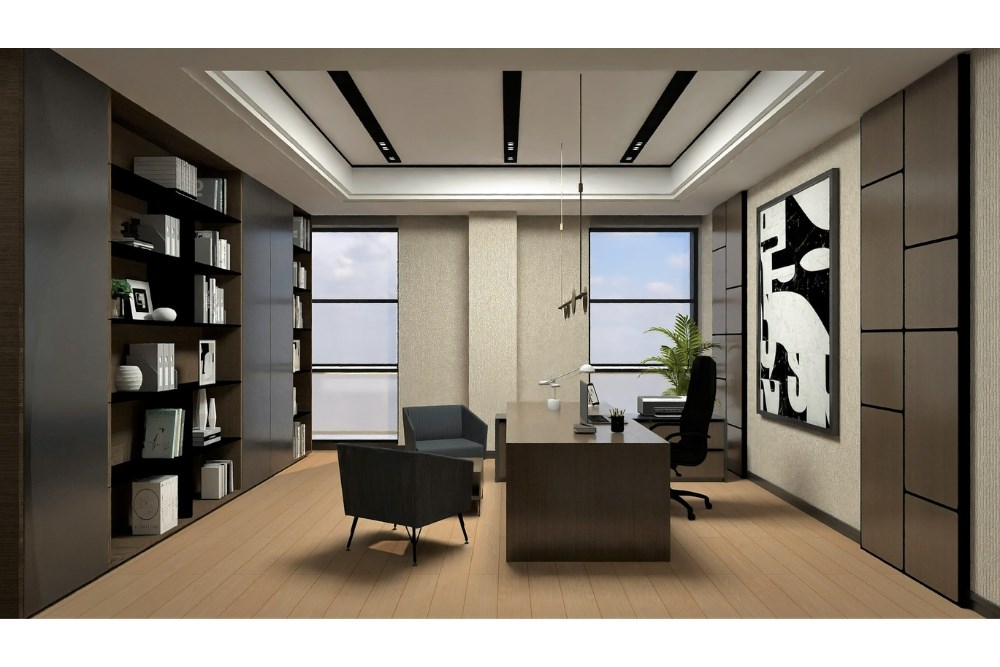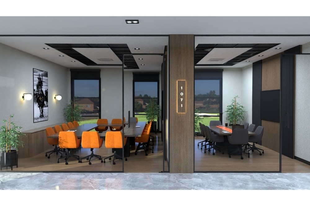 Yönetim katı, iki doğrusal alanın galeri bölgesinde kesişmesiyle meydana gelir. Ana aksın üzerinde konumlandırılan toplantı ofisleri ve orta alanda kullanıcılar için bir sosyalleşme alanı olan geniş hol projenin can alıcı noktalarıdır. Bir diğer aksın üzerinde konumlandırılan yönetim ofisleri ise orman manzaralarını görür ve ofis sakinleri için seyir zevki sunar.