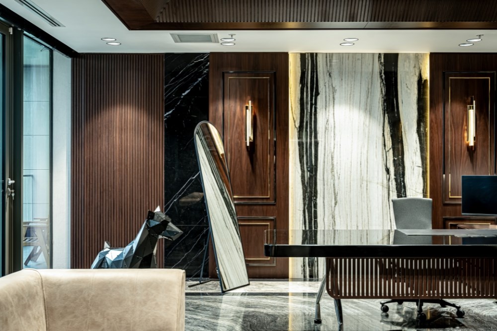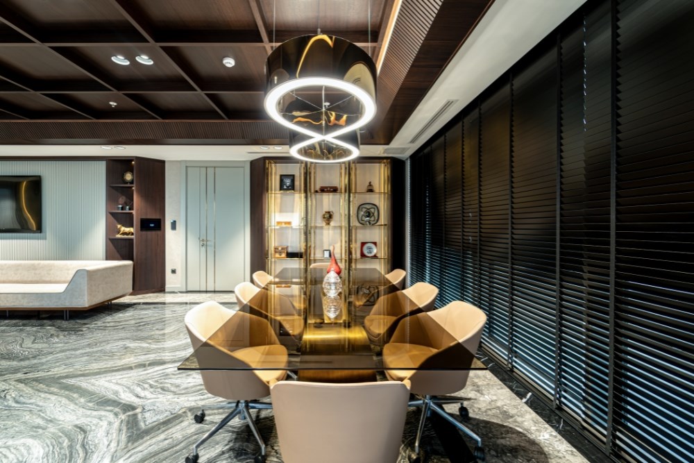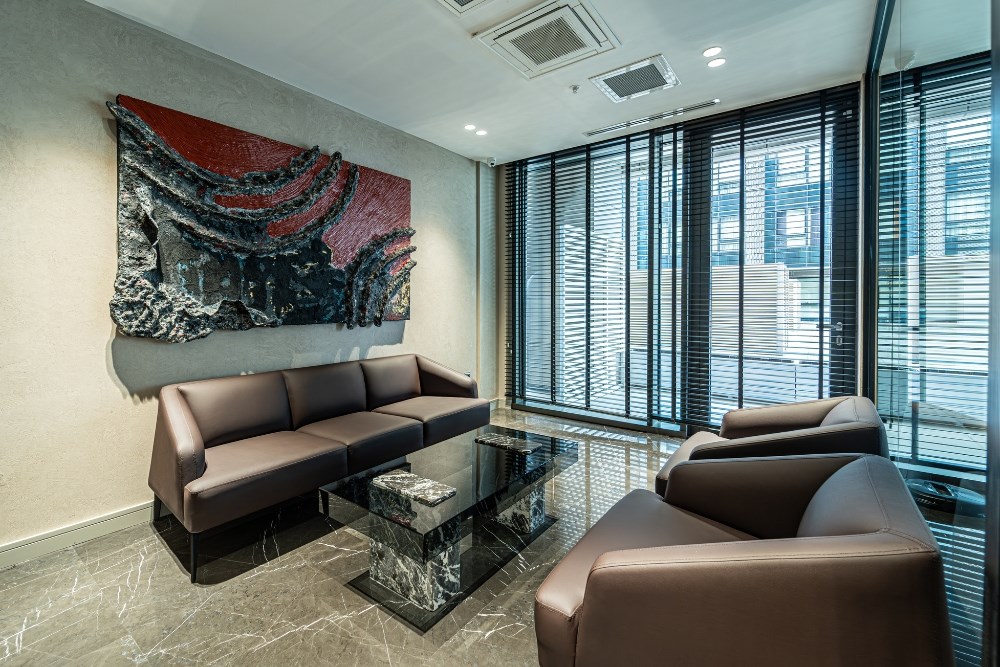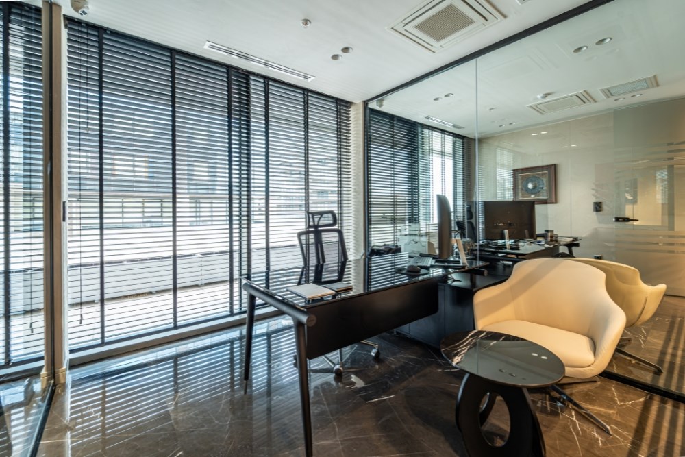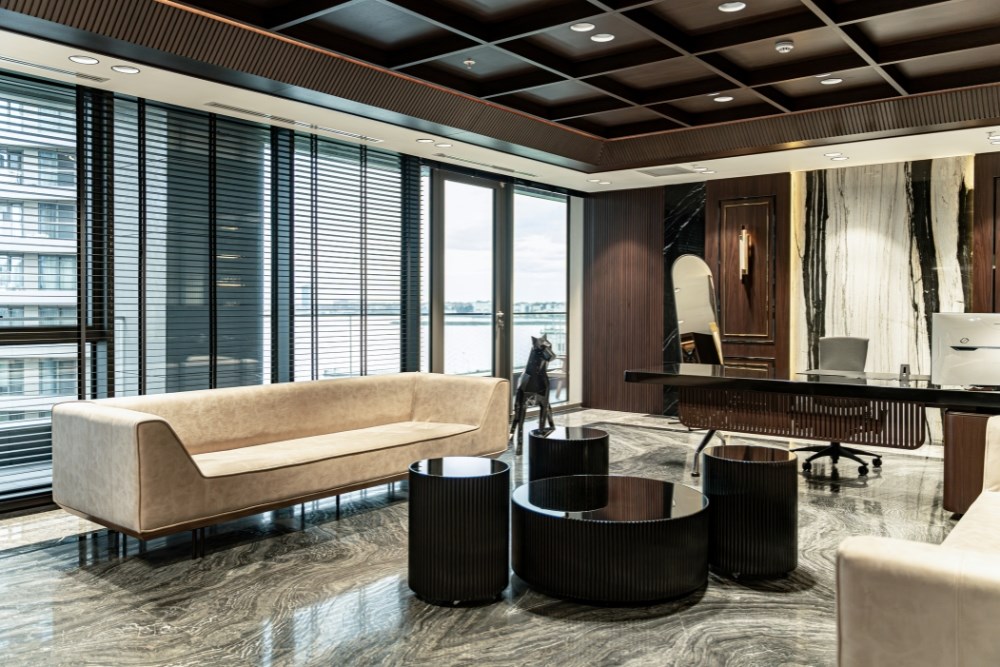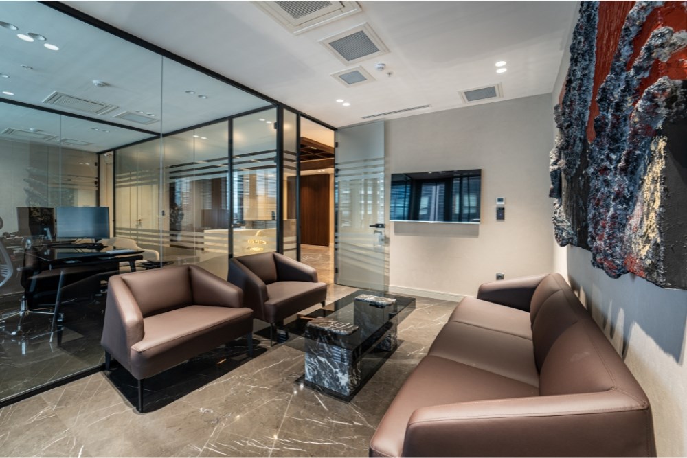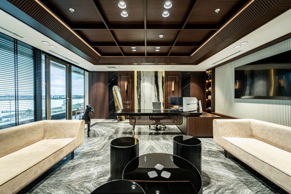 Finans sektöründe faaliyet gösteren kurumsal bir firma için yönetim ofisi tasarlandı. Kullanılan doğal ve rafine malzemelerle hem prestijli hem de zamansız bir atmosfer oluşturulması hedeflendi. Mekânsal kurguda işlevsellik ve temsil gücü ön planda tutulurken, detaylardaki özenli seçimler ile şirketin kurumsal kimliği iç mekâna yansıtıldı. Gösterişli ama ölçülü bir ifade diliyle şekillenen tasarım, yöneticilerin ihtiyaçlarına yanıt veren, aynı zamanda çalışan deneyimini de gözeten bir çalışma ortamı sunmaktadır.