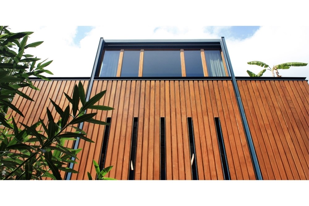 Dış cephe incelediğinde tüm yapıda ahşap, cam ve çelik malzemeler görülmektedir. Çatı bakır kaplama olup teraslarda sert ağaç deckler vardır. İç mekanda ise bodrum kat döşemesinde epoksi, giriş, üst ve teras katı döşemelerinde ise ahşap ızgara üstüne sert ağaçtan tam boy, masif ahşap kaplama kullanılmıştır. Tüm elektrik ve komünikasyon hatları ahşap ızgara arasından dağıtılarak döşeme katmanları içinde bitirilmiştir.