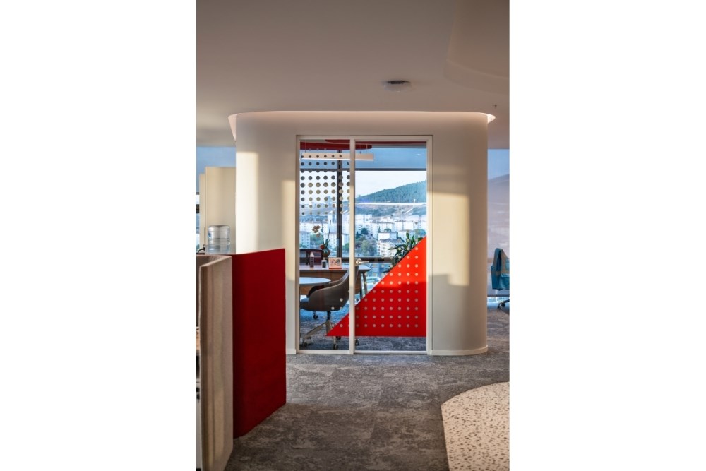 Colgate Türkiye Ofisi, firmanın kurumsal kimliğini yansıtan çağdaş bir çalışma ortamı oluşturmak amacıyla işlevsellik ve estetiği bir araya getiren bir yaklaşımla tasarlanmıştır. Kullanıcıların bir araya gelmesini teşvik eden açık ve kapalı alan kurgusu, ekip içi etkileşimi güçlendiren dinamik bir mekânsal deneyim sunar.