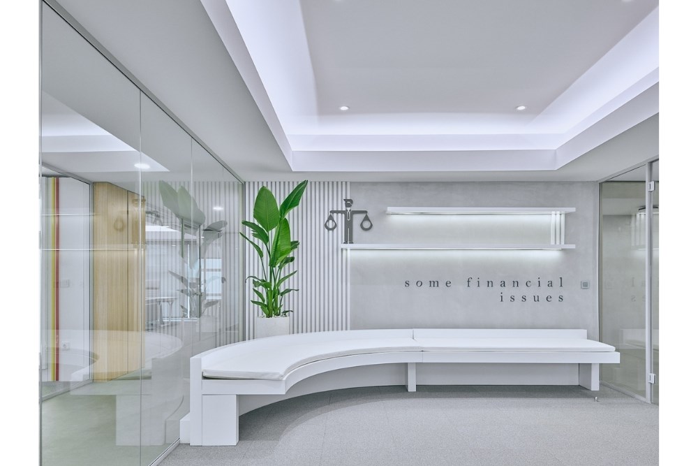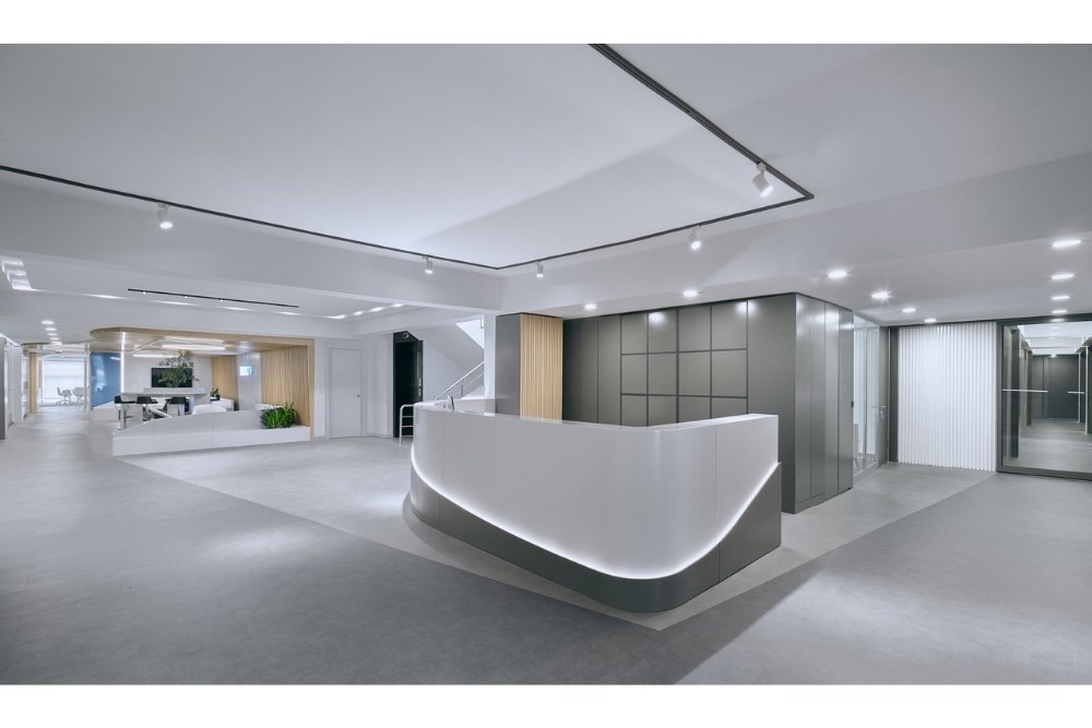 Aydınlık gri zeminlere geçildiğinde, ziyaretçiler İK ve finans departmanları ile ofislerine ulaşırlar. Burada, yönetim kurulu alanından belirgin bir ayrılık vardır; daha enerjik formlar, açık renkler ve oyunbaz mobilyalar dikkat çeker. Renkler, grafikler, şeffaf yüzeyler ve zarif formlar, bu departmanların genç ve dinamik bir atmosferini korurken ciddiyeti de sürdürür.