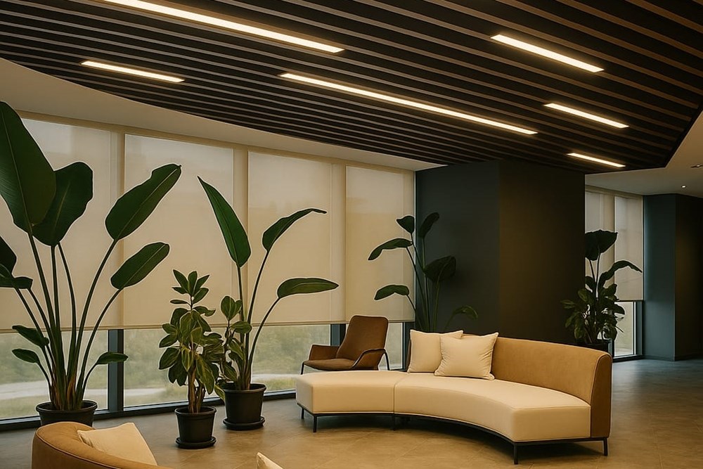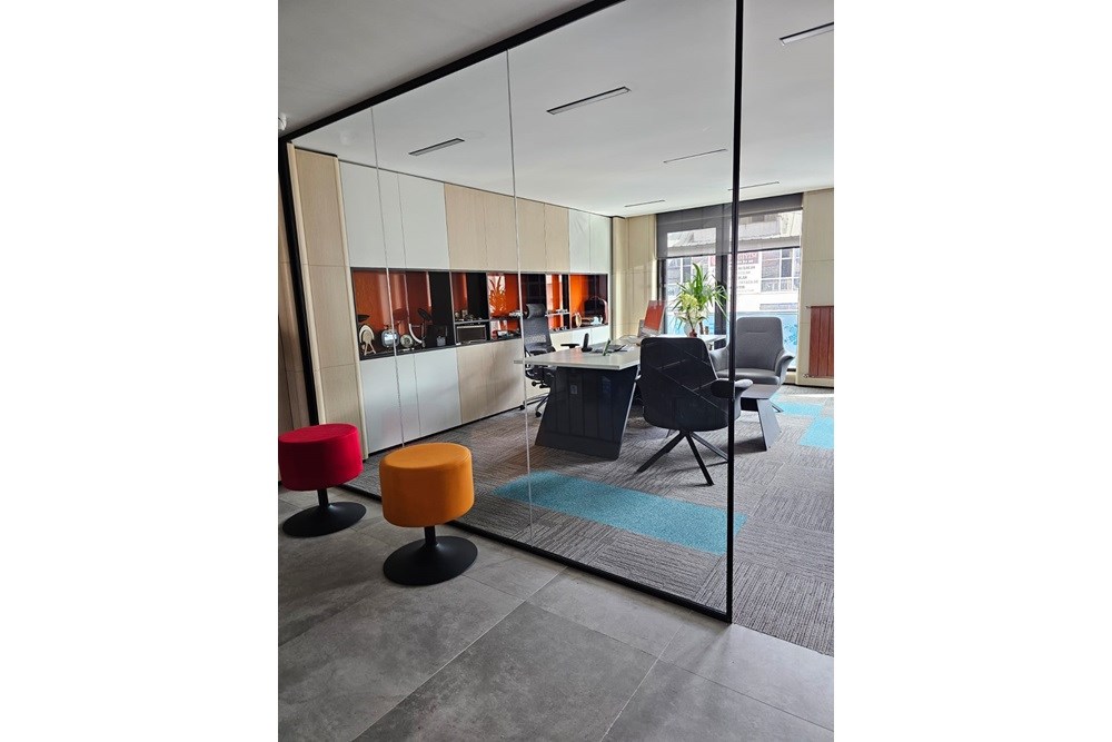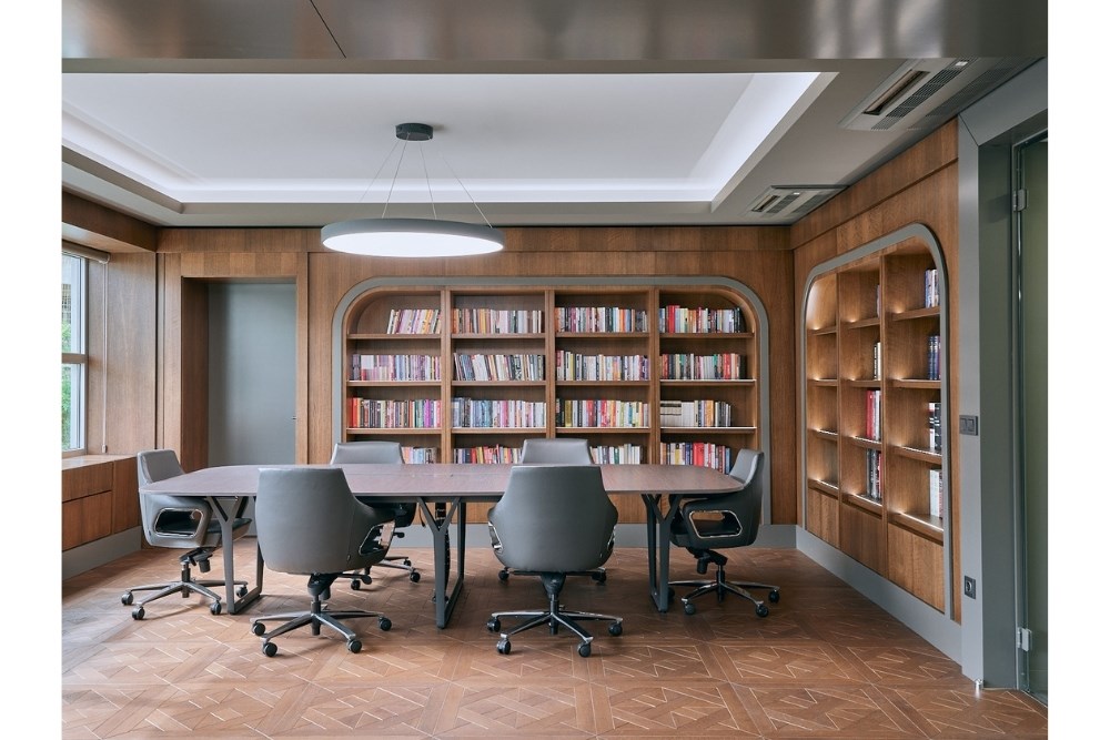 Koyu gri zeminleri takip eden ziyaretçiler, sofistike ve prestijli malzemelerle tasarlanmış yönetim kurulu ofislerine ulaşırlar. Koridorda koyu gri PVC zemin kaplamaları ve meşe kaplama duvar yüzeylerinden odalardaki daha koyu ahşap tonlarına geçiş, bütünsel bir estetik oluşturur.