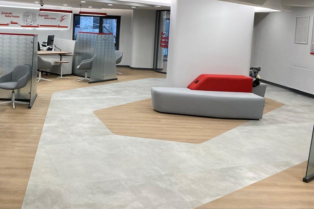 Kat genelinde, her iki renk paletinin kombinasyonunu barındıran, katın merkez noktasında yer alan lobi ve bekleme alanından açık renk paletine sahip üst yönetim departmanlarına ve daha koyu renk paletine sahip yönetim kurulu odalarına geçiş yapılır.
