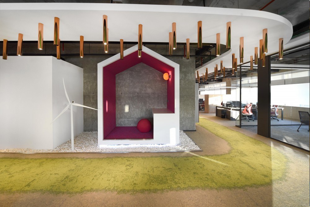 Mevcut yapı şeması, merkezi bir çekirdek etrafında yer alan ve dört bir cepheden aydınlanan katlar şeklinde tasarlanmış. 25. Kat için eldeki program gereği mutfak, IT odası, depolar gibi hizmet alanları çekirdek ile bitişik, açık ofis alanları, toplantı odaları ve yönetici odaları gibi çalışma alanları ise rahat ışık alabilecek şekilde dış cephe kenarında kurgulandı. Sosyalleşmenin sağlanacağı cafe ve yeşil alanlar, farklı çalışma ihtiyaçlarına karşılık olarak düşünülen tekli çalışma kapsülleri, telefonla görüşme alanları mevcut programa eklenerek mekan çeşitliliği sağlandı. Bu mekanları akışkan bir biçimde birbirine bağlayan dolaşım hattı, adeta doğal bir ortamda varolmuşcasına amorf bir yapıda düzenlendi. Yer yer düşey duvarlar ile ‘rekreatif’ sirkülasyon alanı çalışma ortamlarından ayrılırken, yer yer toplantı odaları ve yeşil alanlarla doğrudan ilişki kuruyor. Bu dolaşım hattı, aynı zamanda bisiklet üreticisi olan Holding çalışanları ve ziyaretçileri için bisikletleri deneyimleyecekleri bir patika görevini üstleniyor.