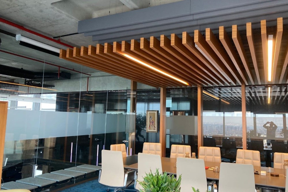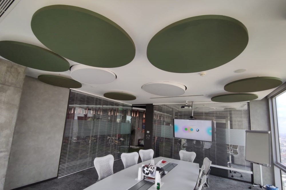 Qubi'nin uzmanlığı ve çözüm odaklı yaklaşımı, Erciyas Holding'in İstanbul'daki merkez ofisindeki akustik zorlukları etkili bir şekilde çözmüştür. Toplantı salonları ve bekleme salonu gibi kritik alanlarda uygulanan akustik panel çözümleri, ses yalıtımında önemli bir ilerleme kaydetmiştir. Akustik canopy panellerin toplantı salonlarında yankı süresini büyük ölçüde azaltması, konuşma anlaşılabilirliğini artırarak çalışanların etkili iletişim kurmalarına olanak tanımıştır. Bekleme salonundaki renkli akustik baffle paneller, gürültü seviyesini düşürerek ziyaretçilerin konforunu artırmış ve rahat bir bekleme atmosferi sunmuştur. Erciyas Holding, Qubi'nin sunduğu akustik çözümlerle, işlevselliği ve estetiği bir araya getirerek daha verimli ve konforlu bir çalışma ortamına kavuşmuştur.