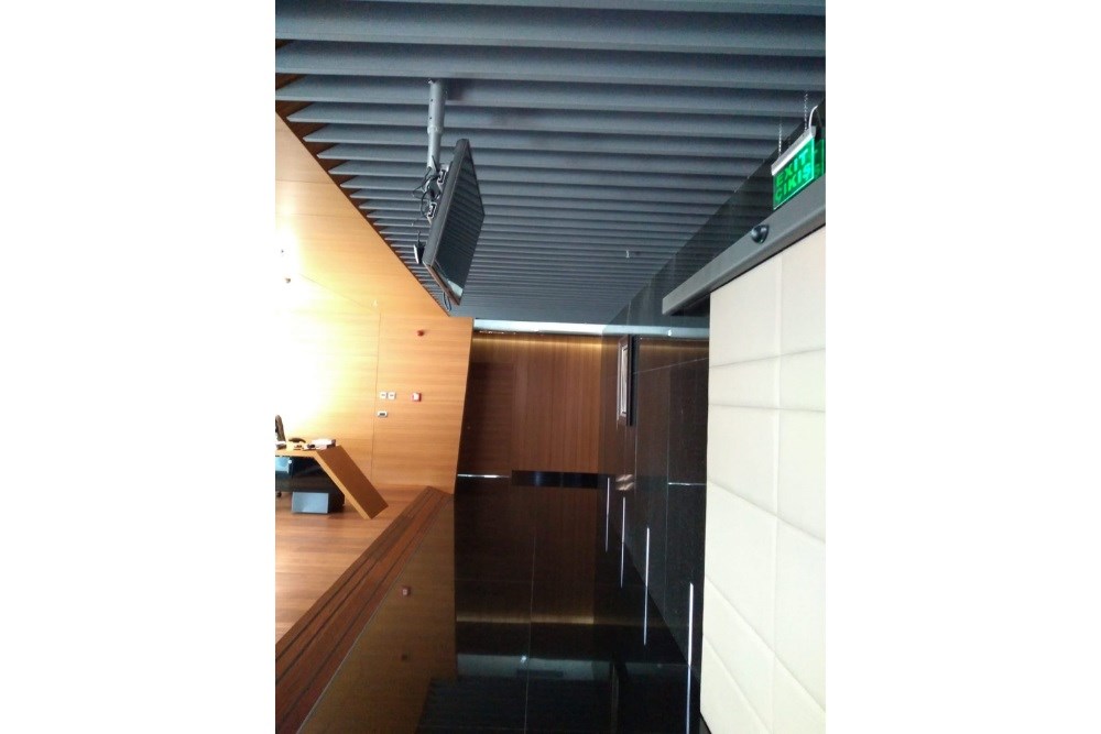 Ses Yalıtımında Uzman Qubi, Erciyas Holding hacim akustiği uygulamaları ile çözüm önerileri geliştirdi. İhtiyaca yönelik akustik performans, canopy ve baffle gibi tavana asılan akustik paneller ile sağlandı. Bu panellerin sahip oldukları ses emici olma özellikleri, ses yansımalarını azaltarak yankı süresini kısaltabilir. Ayrıca, bu panellerin renk, şekil ve boyutları, mimari tasarıma uygun olarak tasarlanabiliyor. Toplantı salonlarının tavanına asılan akustik canopy paneller sayesinde yankı süresi %60 oranında azaldı. Bekleme salonunun tavanına ise farklı renklerde akustik baffle paneller asılarak, yankı süresi %50 oranın azaltıldı.