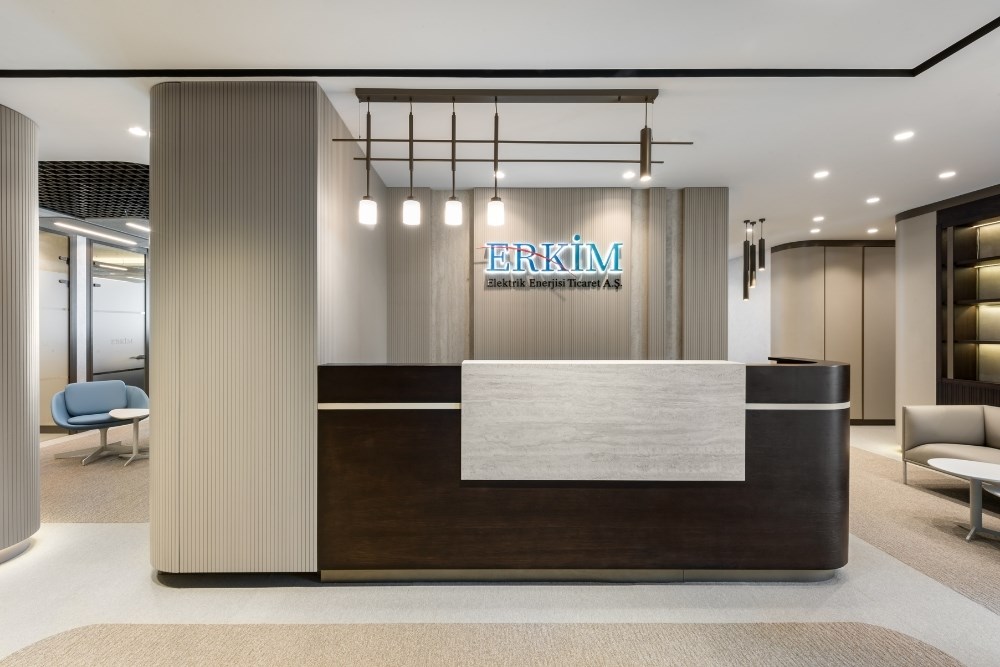 Ankara Nev 201 binasında yer alan Erkim Ofis projesi, üç mekânın birleştirilmesiyle oluşturulan 350 m²’lik tek katlı bir alanda, sakin, yalın ve şık bir atmosfer yaratma hedefiyle tasarlanmıştır. Natamam teslim alınan mekân, tasarım doğrultusunda kapsamlı bir inşaat süreciyle modern bir kimliğe kavuşmuştur.