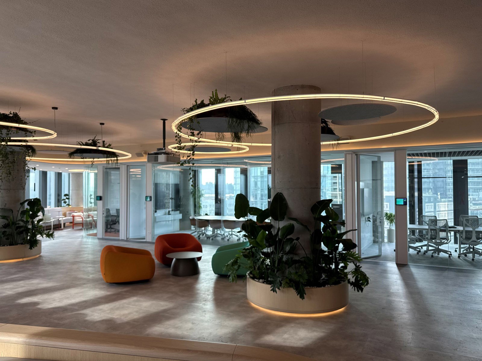 İstanbul Ayazağa’da konumlanan HubX, açık plan kurgusu, yüksek tavanlı hacimleri ve sert yüzey karakteriyle tanımlanan bir ofis projesidir. Betonarme taşıyıcı sistem, geniş cam cephe oranı ve kesintisiz mekansal süreklilik; iç mekanda sesin kontrolsüz yayılımını tetikleyen bir akustik ortam oluşturmuştur. Bu tipolojide, reverberasyon süresinin dengelenmesi ve konuşma kaynaklı gürültünün kontrol altına alınması, iç mekan performansını belirleyen temel parametreler arasında yer alır.