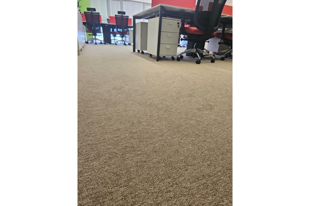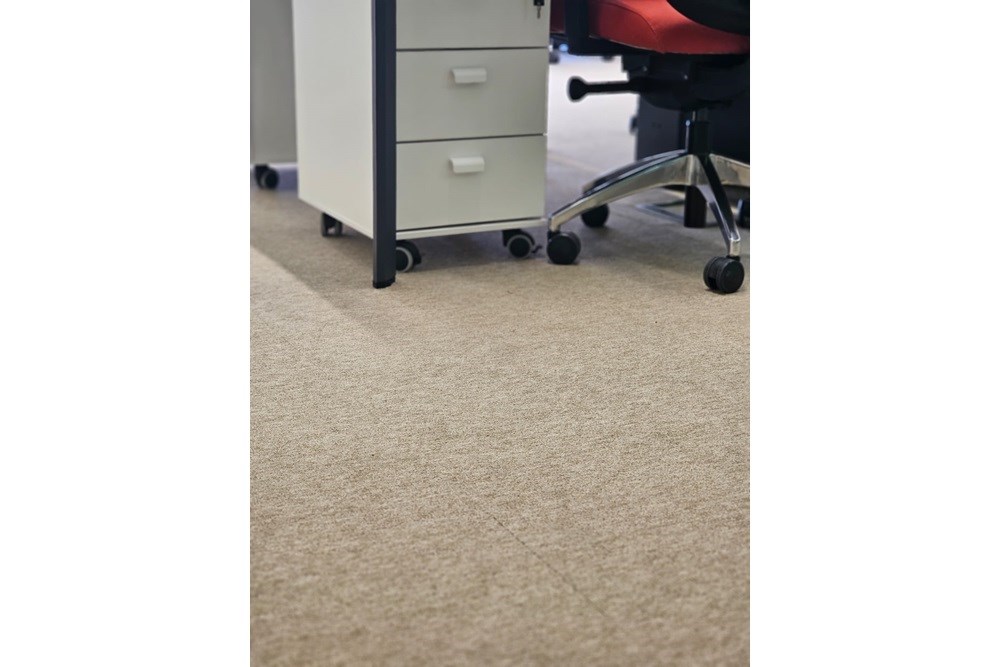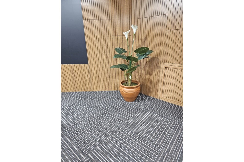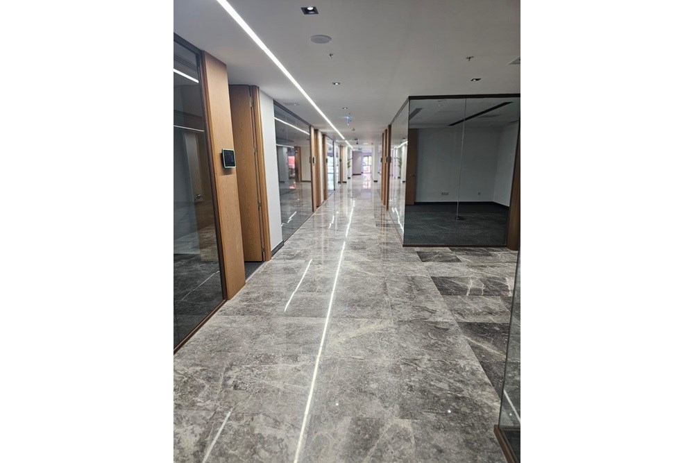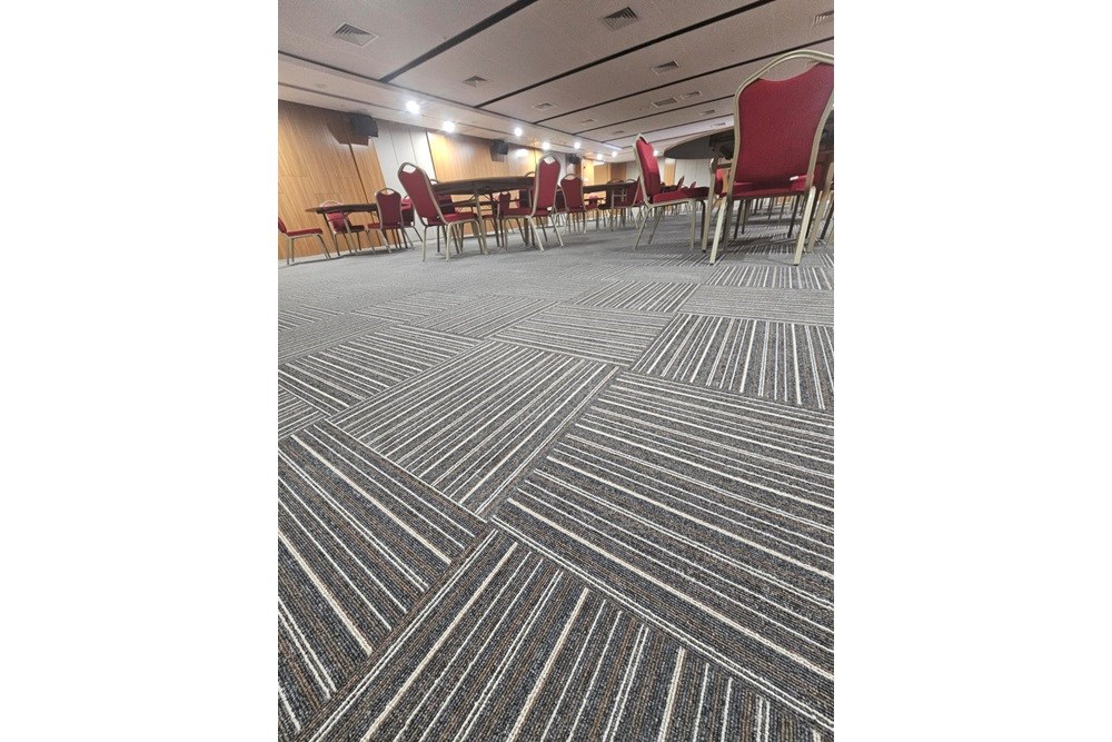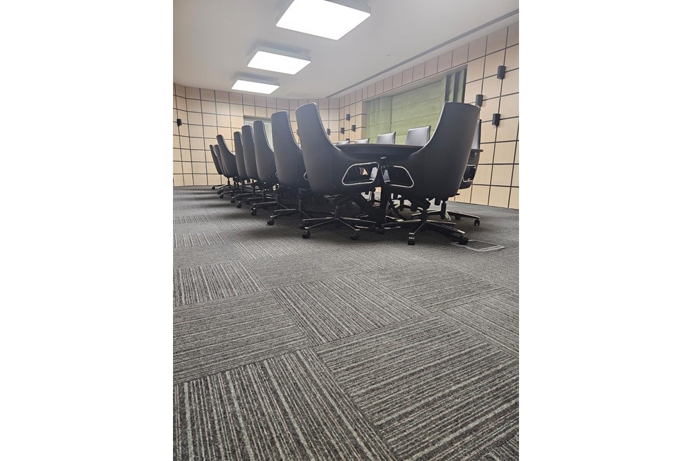 İFM Milenyum ofislerindeki etkileyici karo halı uygulaması, T12 Mimarlık'ın modern ve estetik tasarım anlayışını yansıtıyor. Gri tonlardaki çizgili desen, mekana sofistike bir hava katarken, kırmızı sandalyelerle yarattığı kontrast dinamik bir görünüm sunuyor. T12 Mimarlık'ın özenli işçiliği, halının kusursuz bir şekilde döşenmesinden anlaşılıyor. Bu uygulama, ofis ortamına hem şıklık hem de fonksiyonellik katmış.