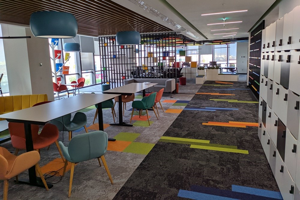 TUTOM ofis zeminlerinde Anıl Zemin Market markasının deneyimli ekibi tarafından satış ve uygulaması yapılmış olan Tessera Layout - Cloudscape ürünleri kullanıldı.