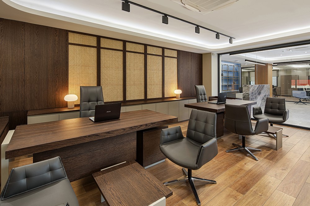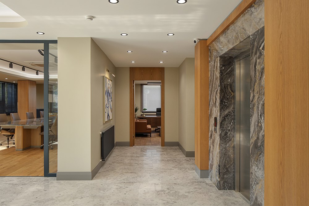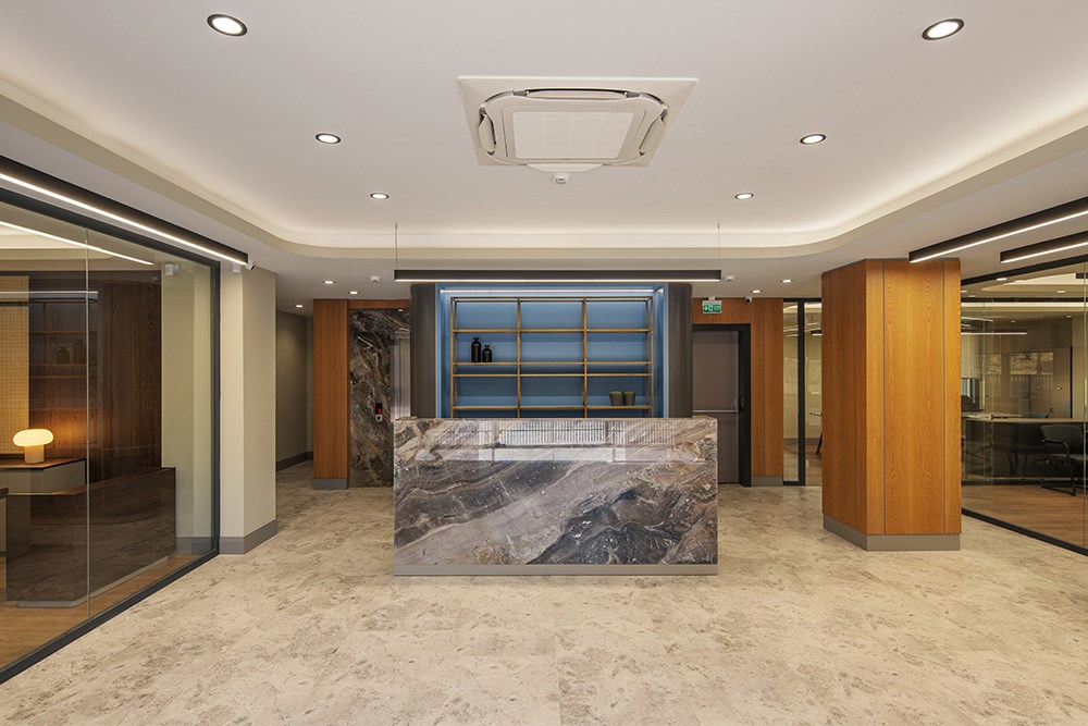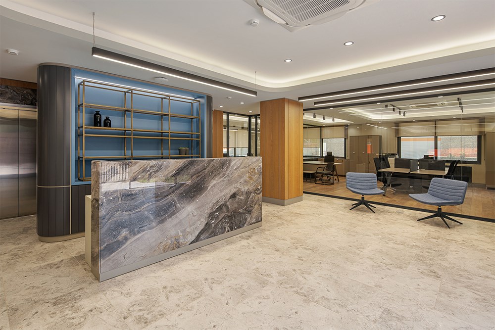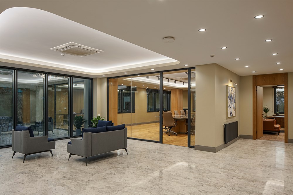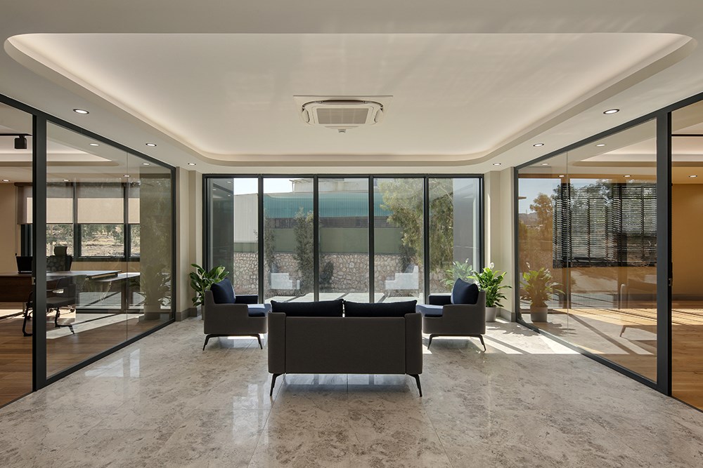 Üç katlı yapının zemin katında karşılama alanı merkeze konumlandırılarak, finans, muhasebe ve İK birimlerine bu merkez etrafında yer verildi. İkinci katta toplantı odaları ve yönetici ofisleri yer alırken, son katta bireysel çalışma alanları ve dinlenme odaları yerleştirildi.