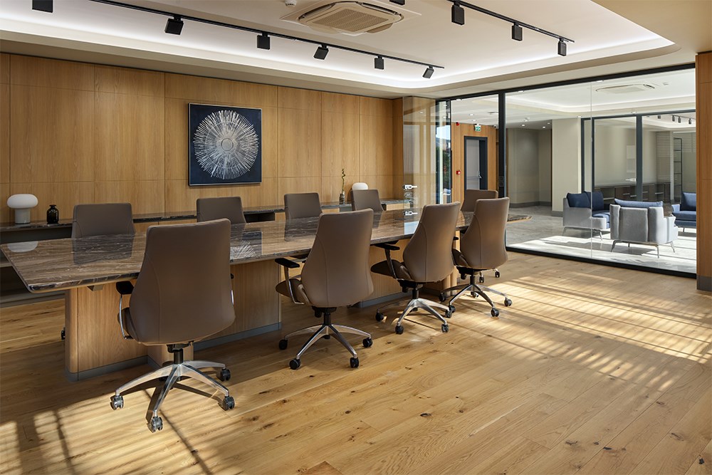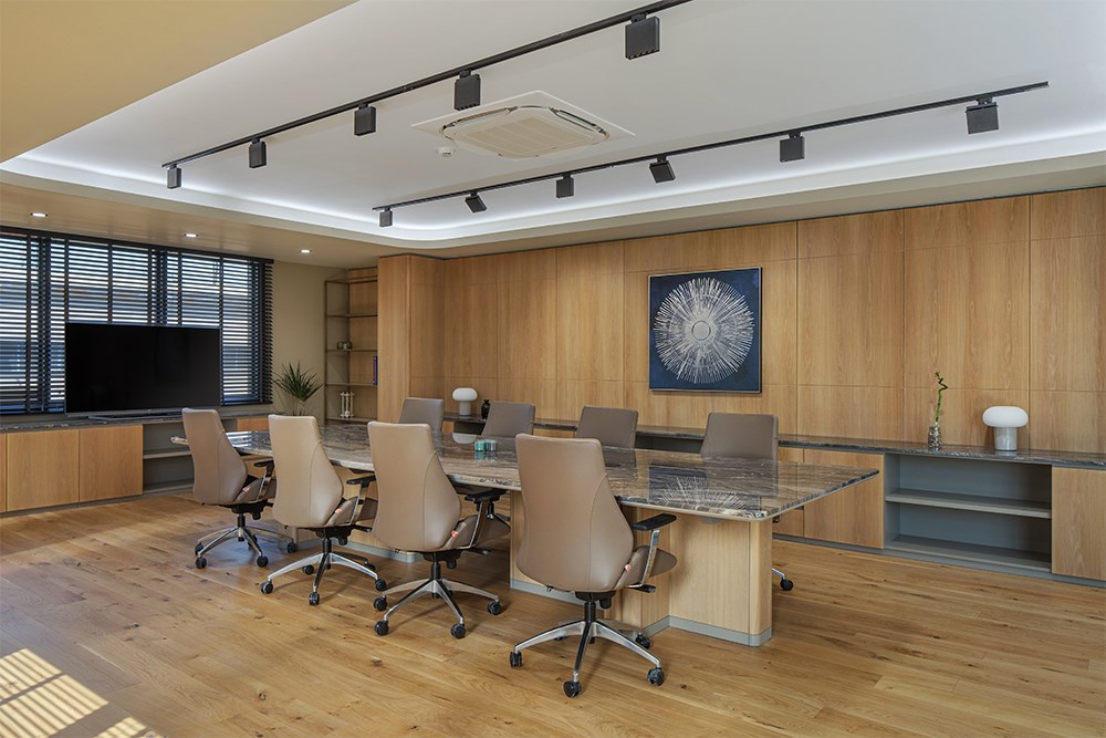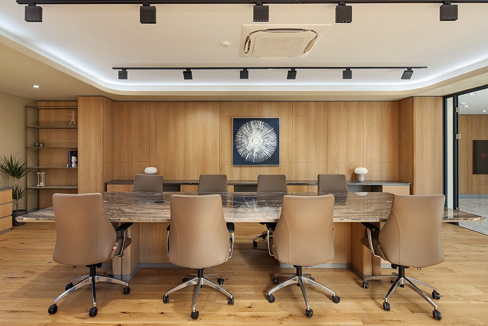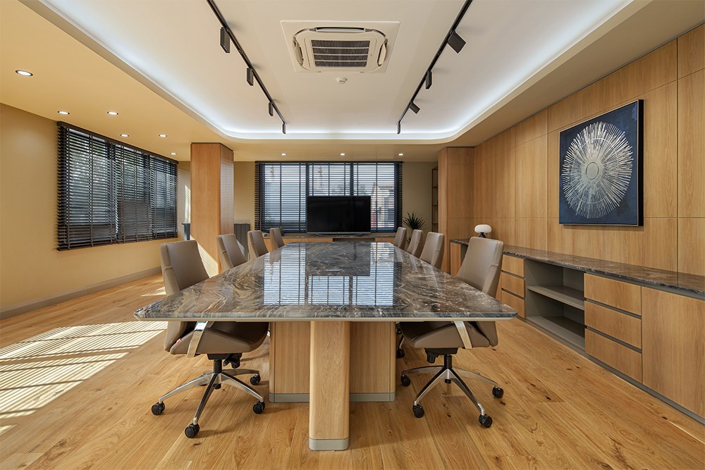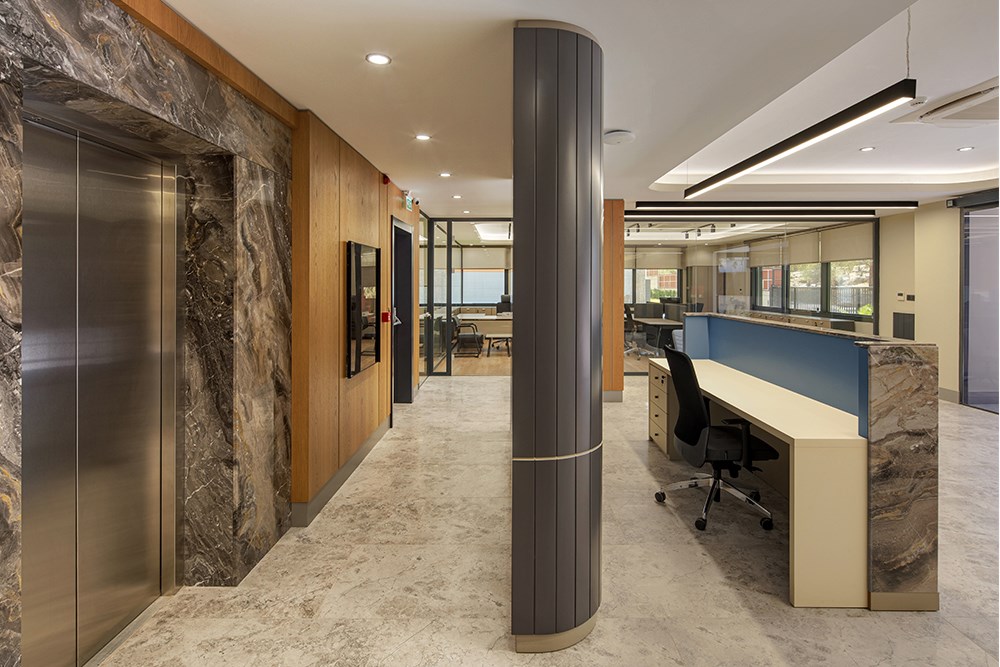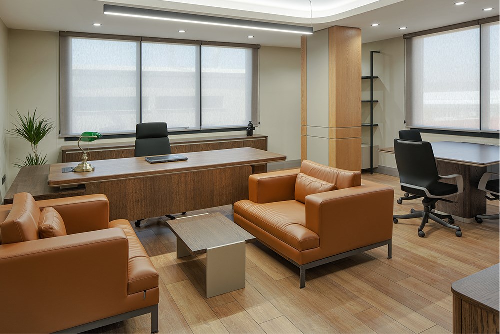 Üç katlı yapının zemin katında karşılama alanı merkeze konumlandırılarak, finans, muhasebe ve İK birimlerine bu merkez etrafında yer verildi. İkinci katta toplantı odaları ve yönetici ofisleri yer alırken, son katta bireysel çalışma alanları ve dinlenme odaları yerleştirildi.