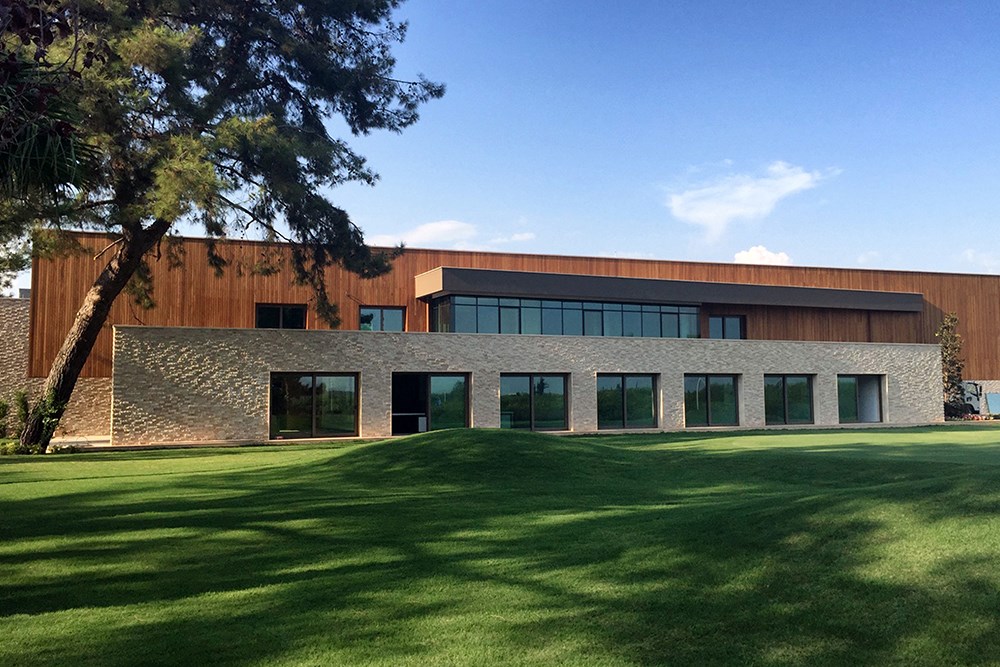 Yapı, Antalya Isparta Karayolu Kurşunlu mevkii üzerinde, yaklaşık 153 dönümlük bir arazi içerisinde yer almaktadır. Teknik olarak bakıldığında 1094.00m2 toplam alana sahip, iki katlı, betonarme ve çelik konstrüksiyondan oluşmuş kompozit bir taşıyıcı sistem ile çözülmüştür. Tasarım süreci içerisinde karar verilmesi gereken en önemli konu, yapının arazi üzerinde nasıl konumlanacağı sorusuna verilecek cevaptır. Yaklaşık 10 da 9’u seralardan oluşmuş mevcut bir doku, kalan 10'da 1'lik kısımda da öngörülen bir yapı, ve firma tarafından üretimi & satışı yapılan golf sahası çiminin sergileneceği bir nevi showgarden da denilebilecek rekreasyona ayrılacak bir yeşil alan… Arazinin kuzey güney yönünü tutan, uzun kenara paralel bir geometride dizilmiş seralara paralel çalışmak, bir zorunluluk gibi görünse de, bu zorunluluk, binaya nitelik kazandıran ögelerin en başında yer alan ‘farklı açılarda doğan ve gelişen duvarlar’ fikrine bir nevi altlık oluşturmuştur.