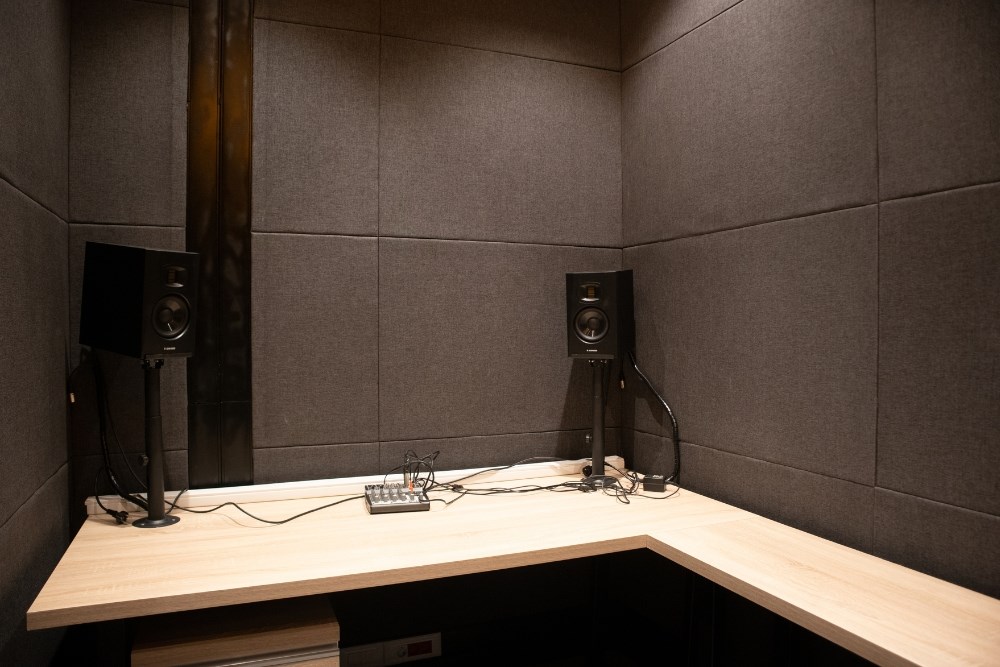 Projenin bir diğer önemli ayağı ise akustik düzenlemeler olmuştur. Stüdyo ortamlarında kaliteli ses kaydı ve yüksek performanslı ses izleme deneyimi sunabilmek adına akustik problemler çözülmüştür. Özel ses emici malzemeler kullanılarak profesyonel bir ses kayıt ortamı oluşturulmuştur. Stüdyo alanları için farklı tip perdeler kullanılarak çeşitli çekim mekanları oluşturulmuştur.