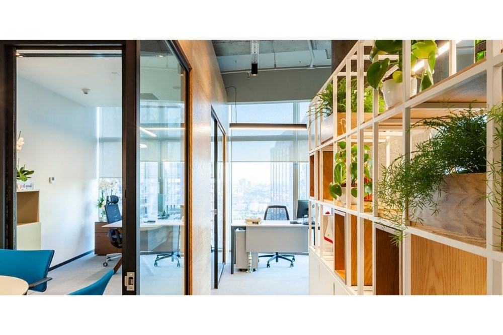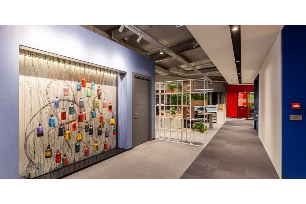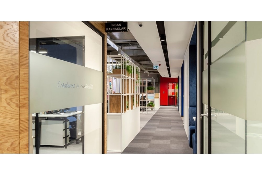 Verimsiz ve yüksek maliyetli büyük toplantı odaları yerine, birkaç kişinin bir araya gelebileceği küçük ama çok sayıda toplantı ve bireysel çalışma alanı ofis geneline yayıldı. Aynı zamanda çalışanların sosyalleşebileceği, büyük toplantı ve etkinliklere ev sahipliği yapabilecek teknolojik altyapıya sahip çok amaçlı bir etkinlik alanı tasarlandı. Firma kültürüne uygun olarak içerisinde bir bar ve küçük amfi basamakları bulunan bu alanda, ahşap pergola formundaki asma tavan, tuğla duvar ve zeytin ağacı gibi ögelerle sıcak bir atmosfer yaratıldı. Bitkiler masa ortalarında, duvarlarda ve seperatörlerde kullanılarak doğal bir ortam hissi güçlendirildi. Homojen bir aydınlatma yerine, masa üstlerinde, aktif çalışma bölgelerinde, sosyal alanlarda ve sirkülasyon alanlarında farklı aydınlatma değerleri tercih edilerek çeşitli ambiyanslar oluşturuldu.