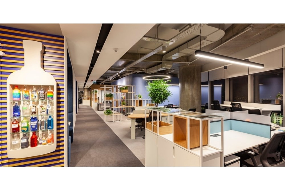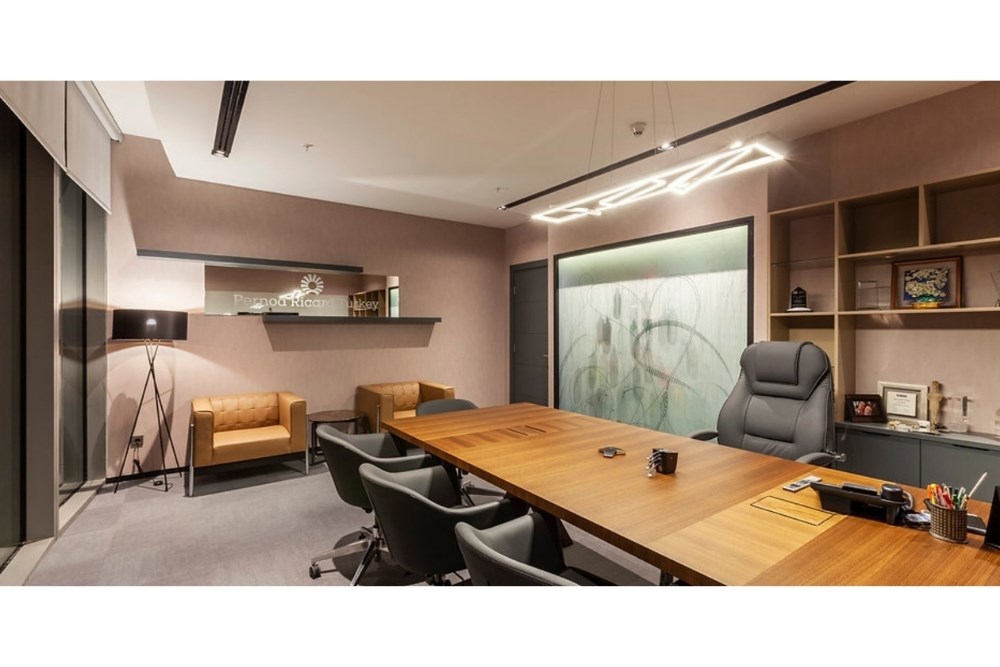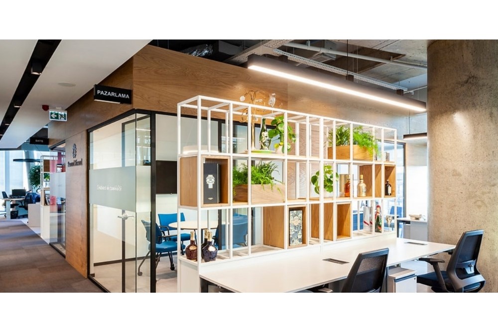 Birçok içki markasını bünyesinde barındıran Pernod Ricard’ın Türkiye operasyonlarını yürüteceği yeni merkez ofisinin, İstanbul Maslak’ta yer alan Spine Tower’ın 19. katında konumlanmasına karar verilmesiyle birlikte başlayan süreçte, mimari ekipten talep edilen; ofis ortamlarının marka ruhunu ve enerjisini yansıtmasının yanı sıra, şirketin büyüme projeksiyonundaki ihtiyaçlarına da cevap verecek bir yapı oluşturulmasıydı.