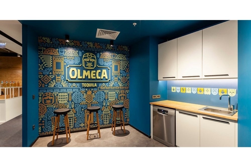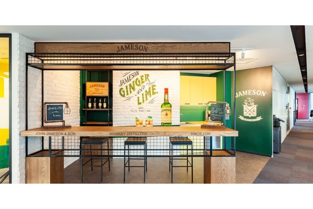 Pernod Ricard bünyesindeki markalardan bazıları, sosyal ve toplantı alanlarında marka köşesi olarak fiziksel mekâna entegre edilirken, diğer markalar grafik anlatımlar ve sanat yerleştirmeleri aracılığıyla mekânda yer buldu. Girişin tam karşısına yerleştirilen, Pernod Ricard markalarına ait şişelerle oluşturulan bir enstalasyon, sanatçı Ayça Telgeren tarafından bu projeye özel olarak hazırlandı. Duvar resimleri ise ressam Alpagut Ayberk tarafından uygulandı.