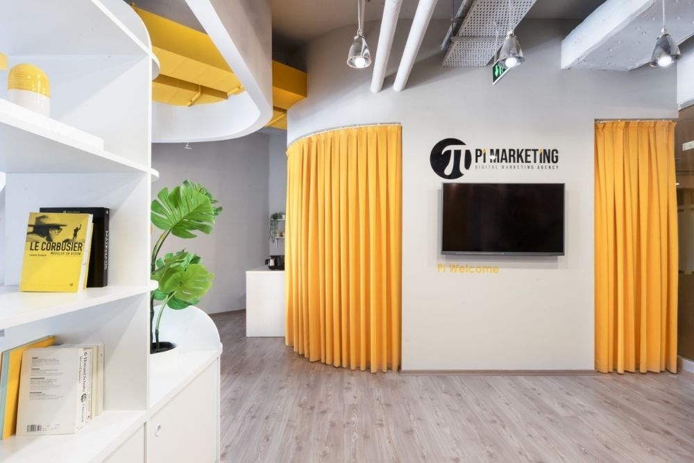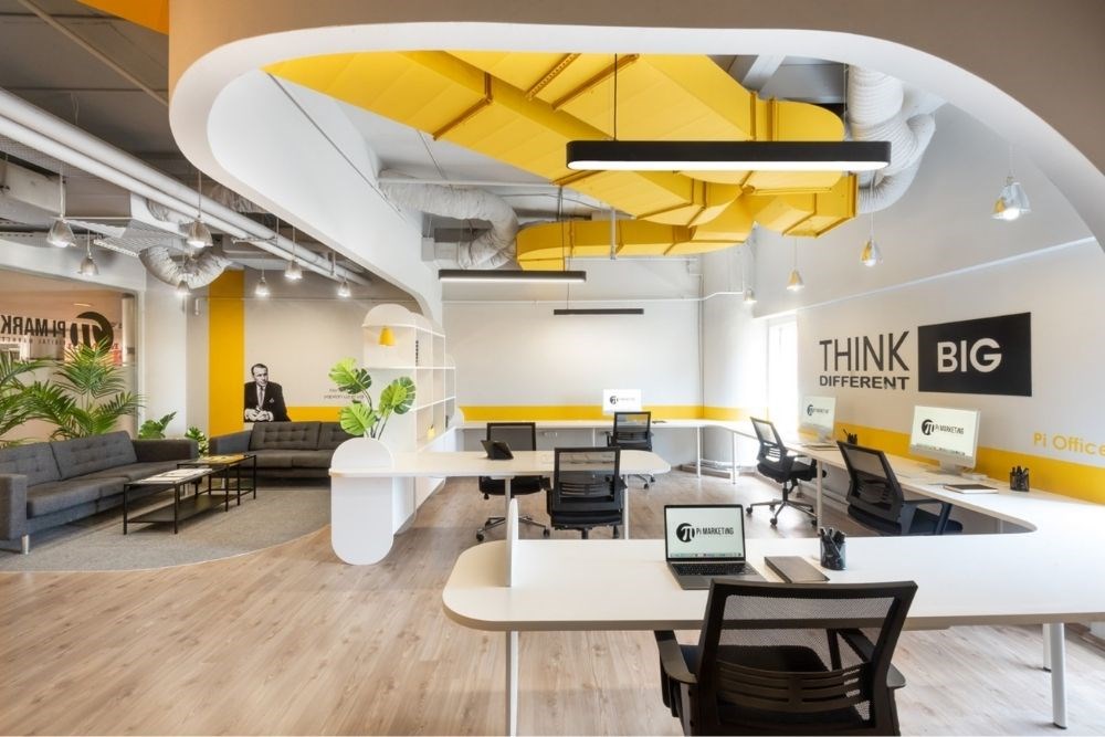 Mimarlar tarafından Pi'nin mükemmel bir daireyle olan ilişkisi ve Pi'nin dairesel temsilleri üzerine çalışılmış ve bu da ofis ve diğer alanları ayıran tavan yapısına ilham vermiştir. Tavandaki havalandırma kanallarının birleşiminin görüntüsü cesurca ortaya çıkarılmış ve sarıya boyanmıştır. Başlarını bir an monitörden kaldırdıklarında görecekleri dairesel strüktürün ve hava kanallarının üstlerindeki birleşim noktasının görüntüsü, ofiste görsel ve iletişim odaklı işler üreten tasarımcılara ilham vermek için tasarlanmıştır.