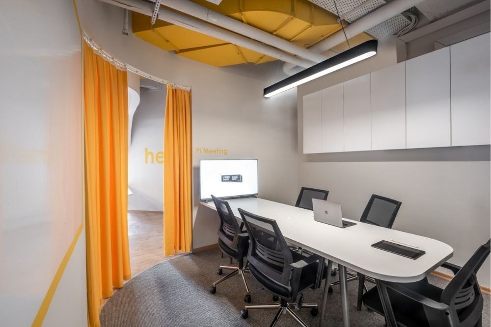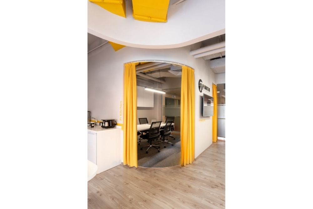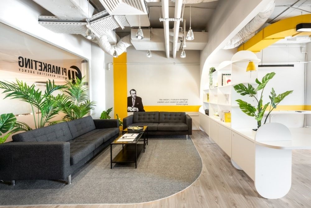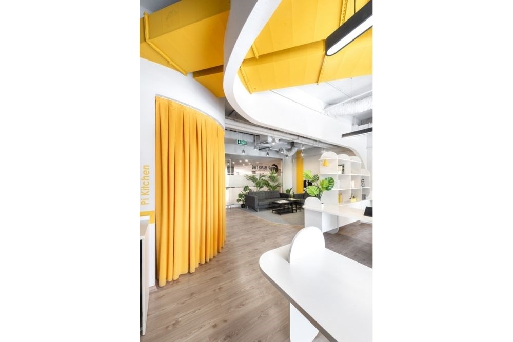 Ofis alanları, ekonomi odaklı, maliyet ve alan açısından verimli cubicle çiftlikleri ve toplantı odaları olmaktan, birden fazla düzeyden ve departmandan insanların birlikte çalışmasına ve yaratmasına olanak tanıyan, çeşitlilik bilincine sahip iş yerlerine doğru uzun bir dönüşüm yolculuğu geçirmiştir. "Birlikte yarat" sloganından ilham alan Mimarlar, Pi Ofis'in küçük alanını, insanların birbirleriyle etkileşime girmesine olanak tanıyan esnek bir total alan olarak tasarlamıştır. Toplantı odası, kapalıyken özel bir toplantı alanı olarak ya da açık ve ofise bağlıyken bir çalışma istasyonu olarak kullanıma uygundur. Daha az duvar ve daha fazla perde bu esneklik sağlanmıştır. Dinlenme alanı; karşılama, bekleme veya rahat bir çalışma ortamı gibi birçok amaca hizmet etmektedir. Açık kitaplık, görsel bağlantıyı engellemeden alanı ikiye ayırır.