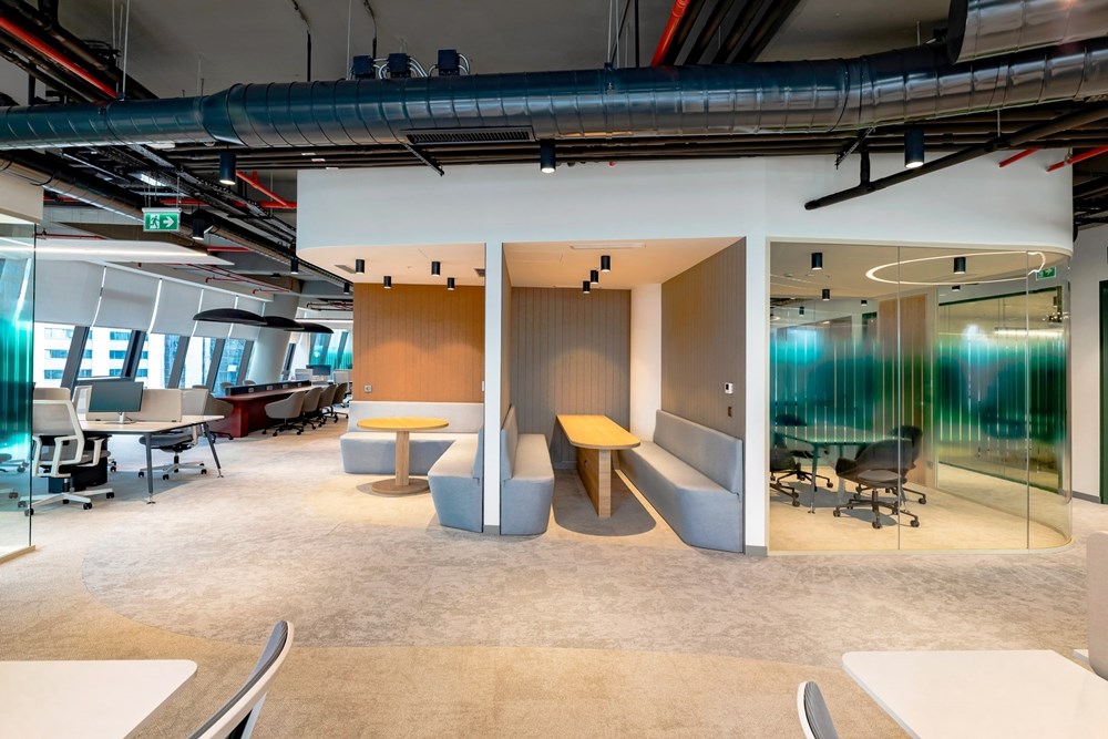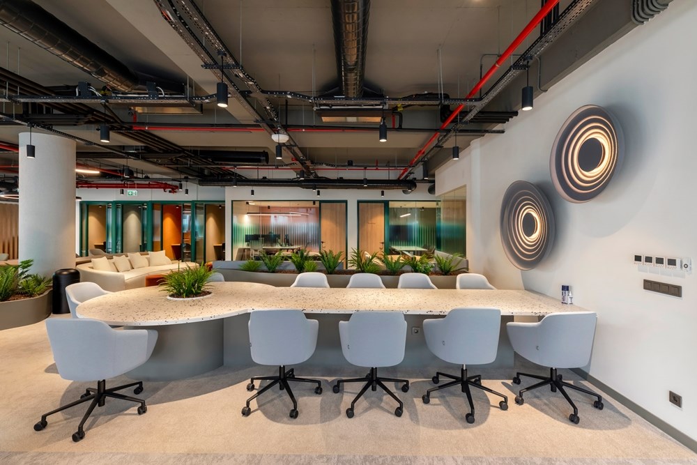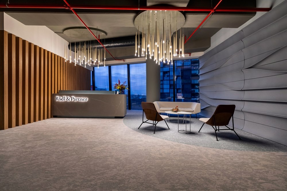 Ayrıca, Rödl and Partner’ın ofislerinde kullanılan Feltouch akustik tasarımları arasında yer alan FLUX, benzersiz tasarımı ve çeşitliliğiyle iç mekanlara ayırt edici bir estetik ve işlevsellik katarken, çalışma ortamlarında akustik performansı da artırmaktadır.