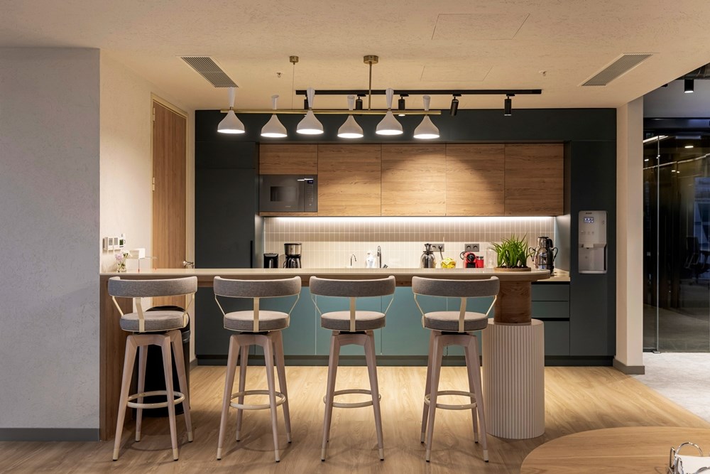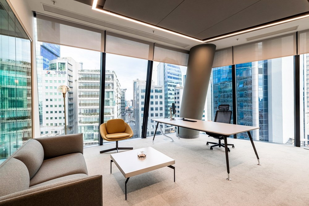 Rödl and Partner’ın ofislerinde kullanılan, geri dönüştürülmüş PET keçe malzemesinden üretilen Feltouch akustik tasarımları, yalnızca estetik açıdan değil, aynı zamanda akustik performans açısından da önemli bir rol oynamaktadır. Bu tasarımlar, ofis ortamında ses yansımalarını ve gürültüyü etkili bir şekilde emerek çalışanlara uygun bir çalışma alanı sunar. Bu durum, konsantrasyon seviyelerini artırır ve genel verimliliği yükseltir.