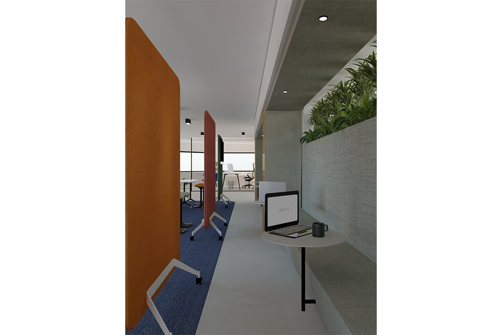 İzmit – Kocaeli Fabrikası içerisinde bulunan S&OP Departmanı kullanıcılarının pandemi sürecinde şekillenmiş olan yeni çalışma stillerine cevap verecek nitelikte çözümler üretilmiştir. Informal çalışma alanları ve sessiz odalar mekan içerisinde kullanıcının daha konforlu çalışmasını destekleyen birimler olmuştur. Alan içerisinde akustik malzemelerle kaplı toplantı kabini kısa süreli toplantılar için elverişli bir alan olmuştur.