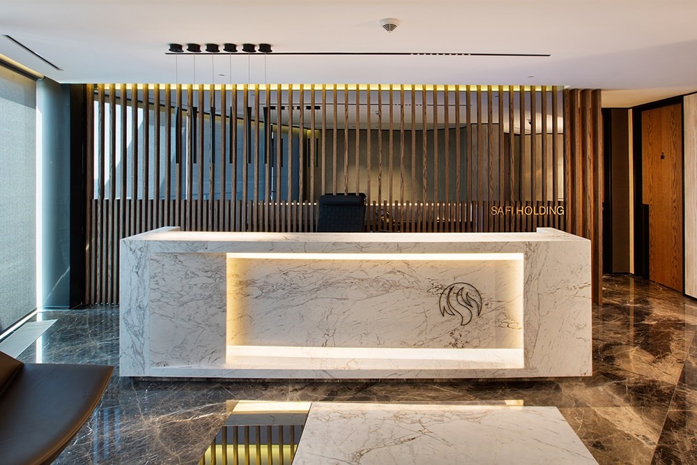 İstanbul Espadon Tower’da yer alan Safi Holding Merkez Ofisi’nin iç mimari düzenlemesi, TEAM Proje Mimarlık’ın özgün tasarım vizyonu çerçevesinde şekillendirilmiştir. Yönetim Kurulu Başkanı ve Yönetim Kurulu’nun kullanımına ayrılan katlarda yer alan lobiler, toplantı salonları, dinlenme, çalışma ve özel kullanım alanlarının tasarımı titizlikle projelendirilmiştir.