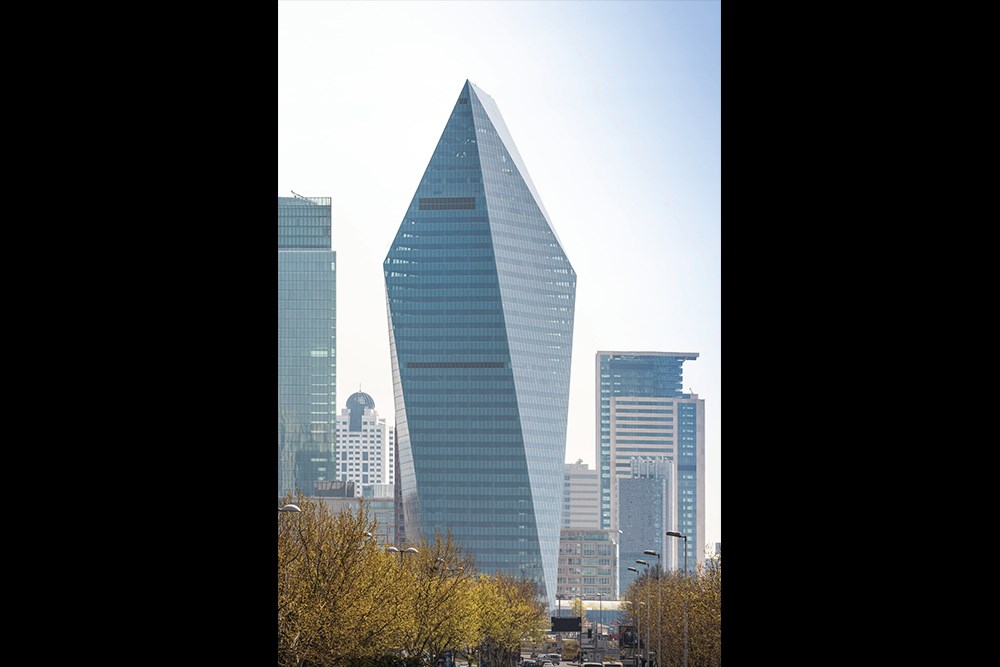 168m yüksekliğinde, yaklaşık 100bin m²alanlı KristalKule, Levent-Maslak eksenindeki gökdelenler arasında formuyla en çok ilgi çekeni...