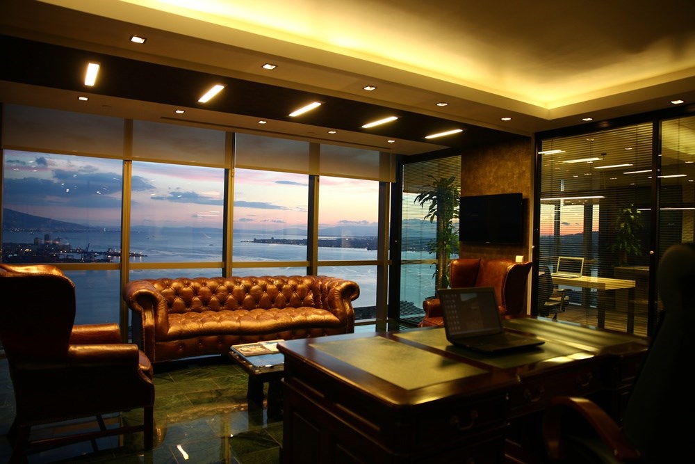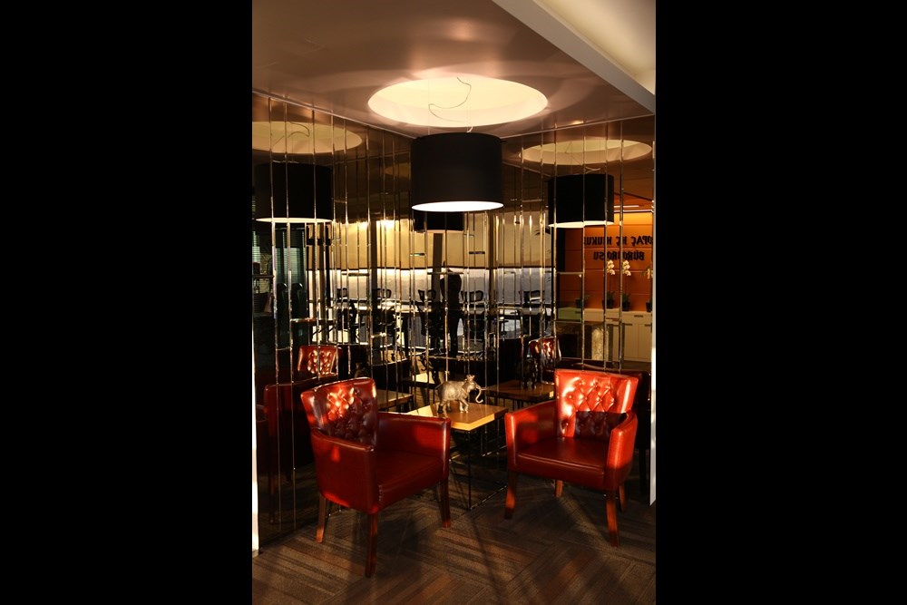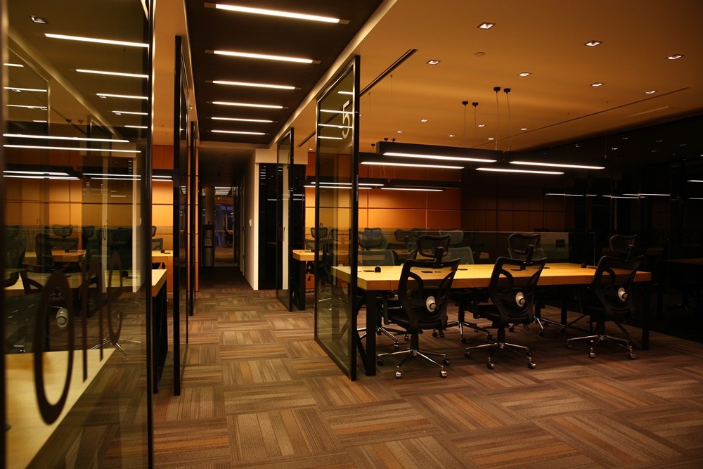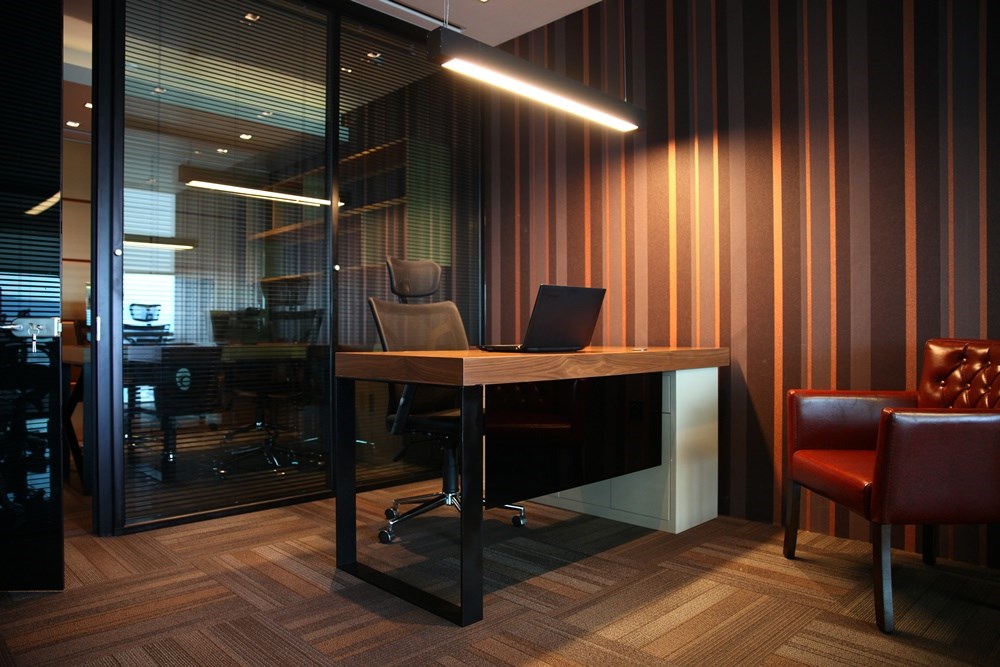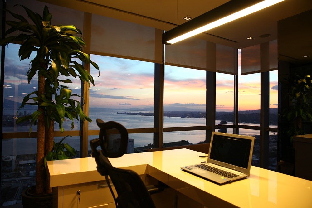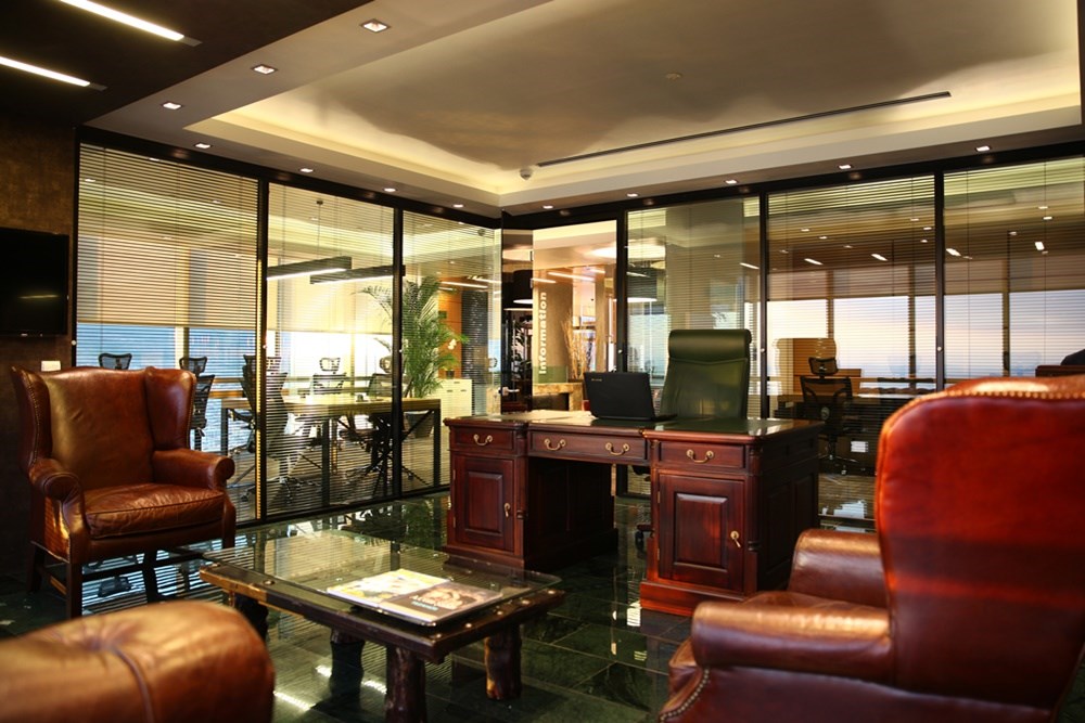 İzmir Folkart Towers B Kule’de bulunan Topaç Hukuk Bürosu, dört ayrı ofis birleştirilerek 300m²’lik tek bir ofis olarak tasarlanmıştır. Personel sayısının yüksek olduğu ofiste, fonksiyonellik ve estetik birlikte düşünülmüştür. Çoğunluğu açık ofis olarak uygulanan projede, personel ve yönetici alanlarının görsel ilişkisi kopmayacak şekilde şeffaf bölmeler, mekan sınırlarını belirlemek için kullanılmıştır. Yalın ve düz hatlara sahip olan mobilyalar ile mekana sadelik ve işlevsellik sağlanmıştır. Depolama alanlarında kullanılan siyah boyalı cam, mekana derinlik kazandırmıştır. Sirkülasyonun yoğun olduğu alanlarda karo halı tercih edilirken, yönetici odasında mermer zemin kullanılmıştır. Açık ofis içerisindeki dolaşım akslarını kuvvetlendirmek adına, tavanda yapılan farklı uygulamalarla görsel bütünlük sağlanmıştır. Genel ofis alanında modernizm etkili olurken, yönetici odasında klasik bir atmosfer yaratılmıştır.