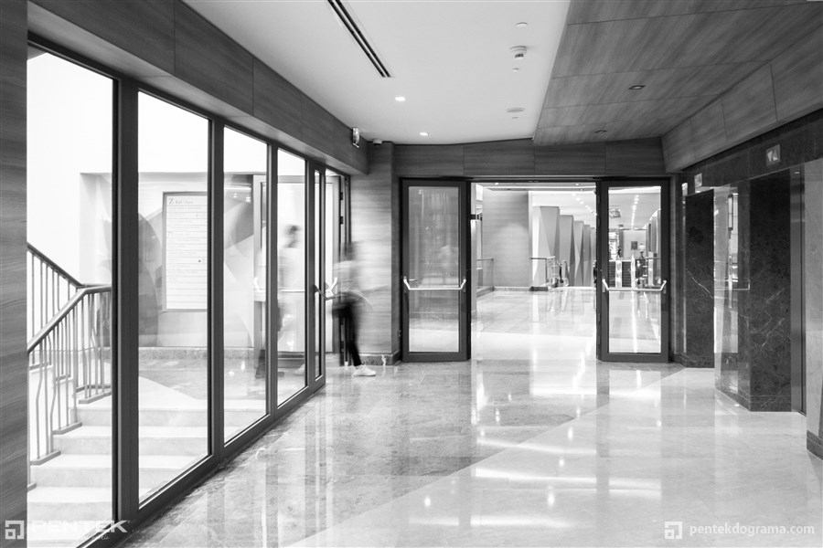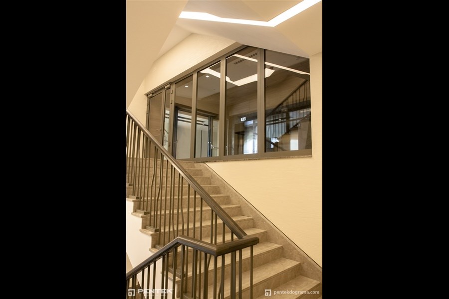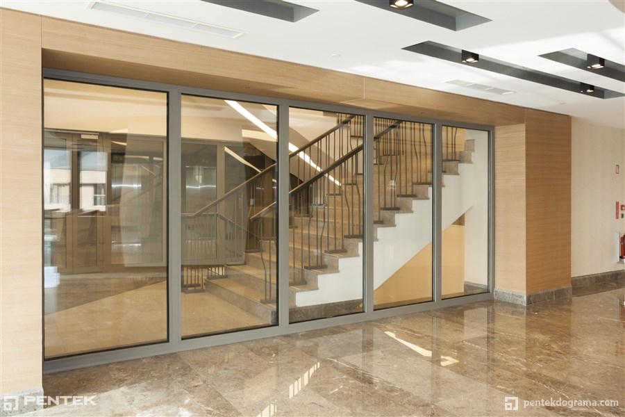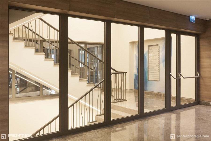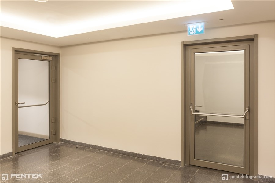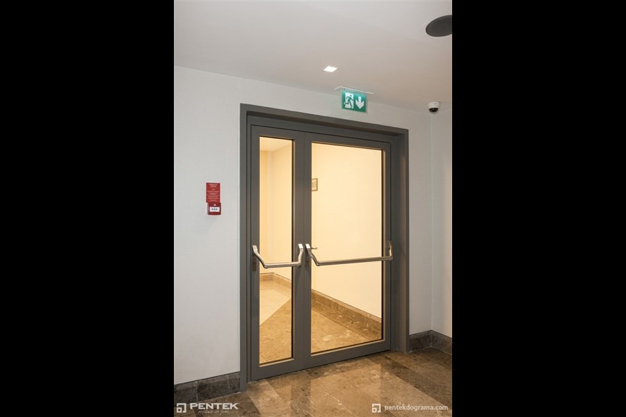 Projede ayrıca Pentek – RP Technik camlı yangın kapıları tercih edildi. Bina genelinde kullanılan EI 60, EI 90 sınıfı camlı yangın kapılarına ek olarak, yangın merdivenlerinde EI 120 sınıfı yangına dayanıklı camlı bölme duvarları kullanıldı. Camlı yangın doğramalarının yanı sıra, camlı swing kapılar ve kontrollü geçiş kapılarında da Pentek çelik doğramaları seçildi.