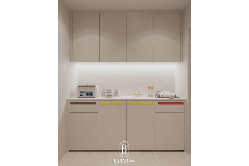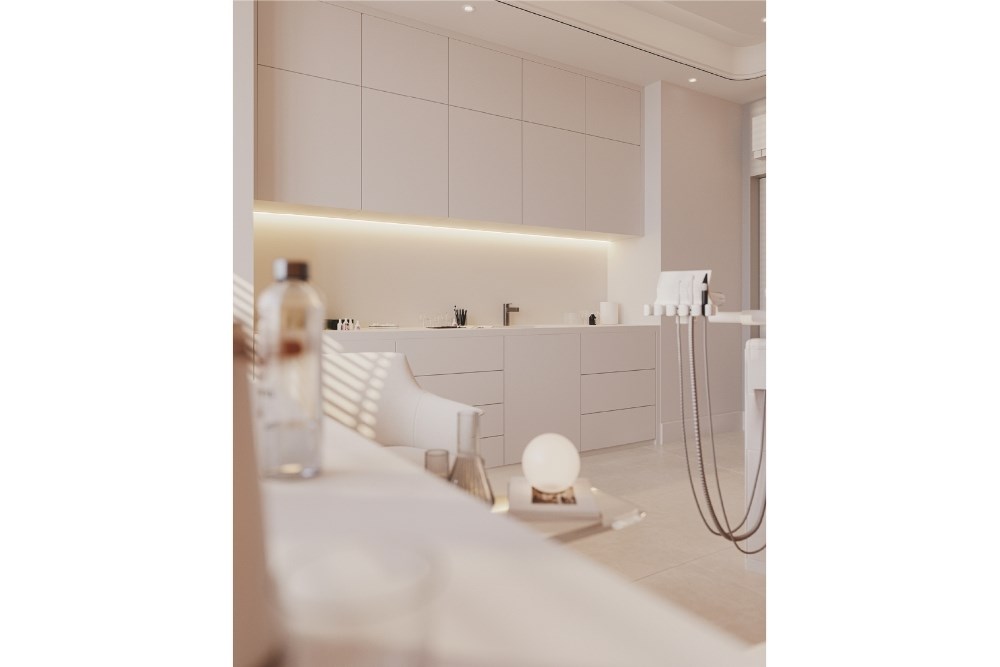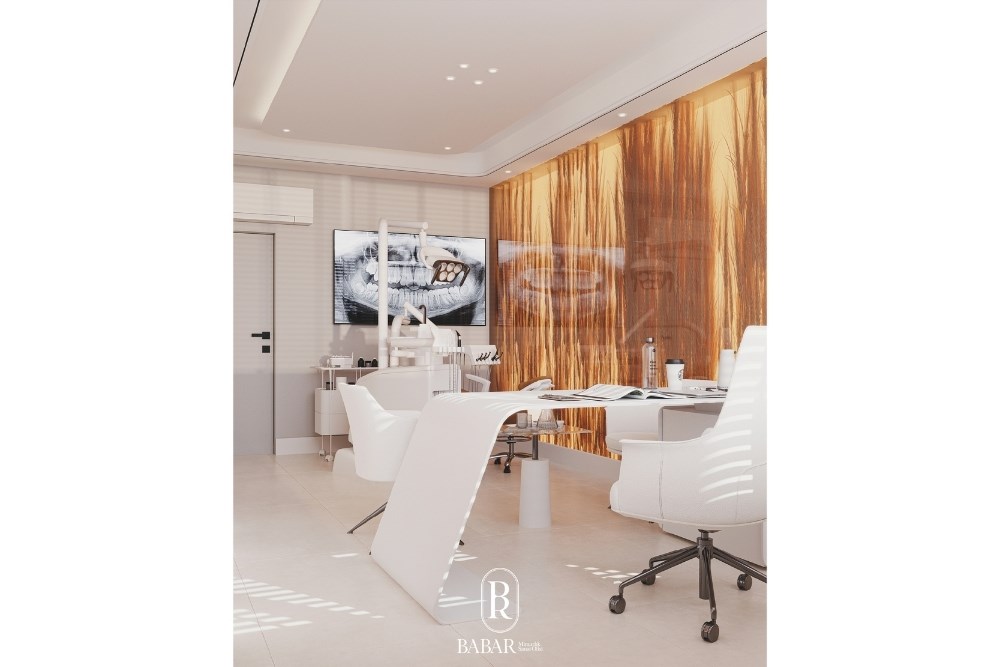 175 m²’lik alana yayılan klinik; bekleme, danışma, sterilizasyon, operasyon ve muayene birimleri arasında net ama kesintisiz bir kurgu sunar. Malzeme geçişleri ve renk skalası, fonksiyonel sınırları görünmez hâle getirerek mekânın bütünsel bir algı yaratmasını sağlar. Akustik denge, aydınlatma senaryoları ve kullanıcı konforu, her tasarım kararının merkezinde konumlanır. Böylece proje, tıbbi standartlarla estetik duyarlılığı buluşturan, zamansız bir iç mimari dili temsil eder.