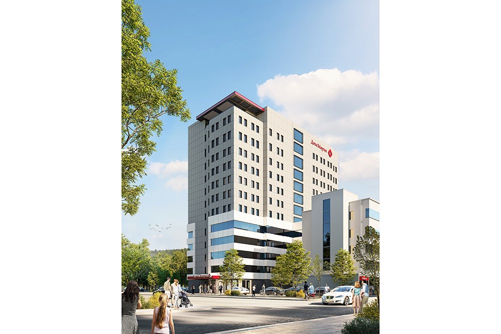Binada Nöroloji, Gastroenteroloji, Damar Cerrahisi, Üroloji, Jinekoloji, Pediatri, Yoğun Bakım Ünitesi, Onkoloji, MR görüntüleme ve lineer hızlandırıcı bölümleri, ameliyathaneler, laboratuvarlar, bir tıp merkezi ve bir sterilizasyon merkezi bulunuyor. 70 standart oda, 195 standart yatak, 12 VIP oda ve yatak kapasitesine sahip olan binanın 10. katı konferans salonu, kütüphane ve dersliklerden oluşan bir üniversiteye ev sahipliği yapıyor. Giriş ve zemin katlarında eczane ve lobi bulunan hastanenin 11. katında yönetim ofisleri, 12. katında ise mutfak, restoran ve teras yer alıyor.