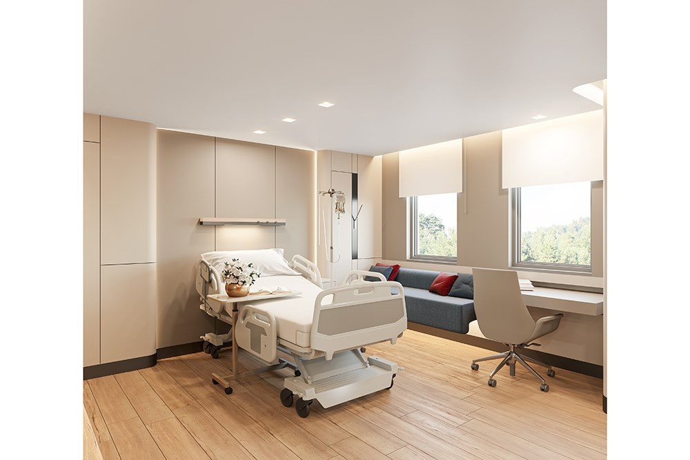 Binada hastaların ve ziyaretçilerin çeşitli ihtiyaçlarına göre özel veya sosyalleşebilecekleri alanlar yer alıyor. Ayrıca her bölümün dışarıyla özel bağlantısı sağlanarak hasta ve ziyaretçilerin doğayla iç içe vakit geçirebilmeleri amaçlanıyor. Tek kişilik odalarda ziyaretçilerin hasta yanında kalabilmeleri için rahat koltuklar, koridorlarda ise ziyaretçilerin beklerken rahat edebilecekleri oturma alanları ve yeşil bitkiler yer alıyor. Geniş ve ferah ortamıyla ön plana çıkan restoran, ziyaretçi ve çalışanlara doğayı izleyerek dinlenme imkânı sağlıyor. Özel tasarım koltuklarıyla dikkat çeken ve sunum için gerekli araçlarla donatılmış konferans salonu, ortak çalışmalar, bilgi ve fikir alışverişi için kullanışlı bir alan sunuyor.