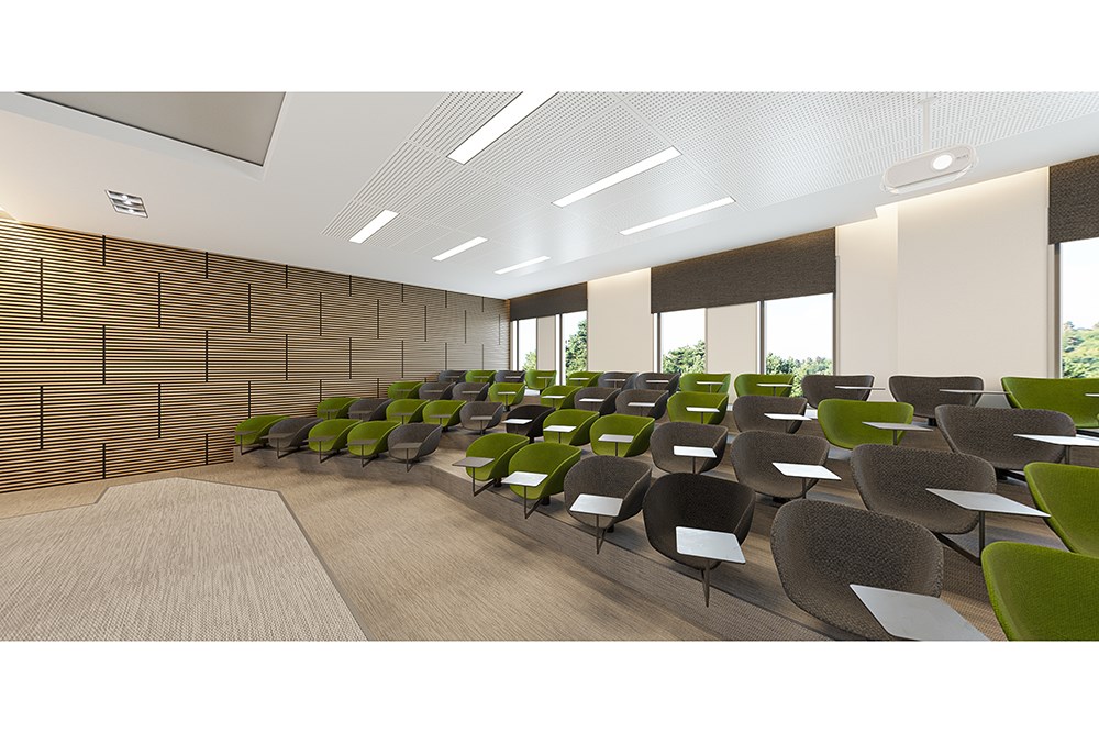 Deva Maria Hastanesi’nin ek binası çevresel stres unsurlarını azaltmayı amaçlayan, hastaları ve ziyaretçileri huzurlu ve evlerinde hissettiren iyileştiren mimari prensiplerine göre tasarlandı. Yuvarlatılmış köşeleriyle açık renkli duvarlar ile birlikte ahşap kullanımı mekâna rahatlatıcı bir hareketlilik kazandırıyor. Duvar ve döşemelerde beyaz ve bej gibi sade renk tonlarının kullanımı ve laminat yer döşemeleri hastalara huzurlu bir ortam sağlamaya yardımcı oluyor. Hasta odaları başta olmak üzere iç mekanlar gün ışığının ve doğanın hastalar üzerindeki iyileştirici etkisi dolayısıyla bol miktarda gün ışığı alacak ve dışarıdaki doğa manzarasını görecek şekilde tasarlandı. Ayrıca, odalarda hastaların dilediklerinde kendilerini meşgul ederek streslerini azaltmalarına yardımcı olmak için büyük ekran TV’ler bulunuyor.
