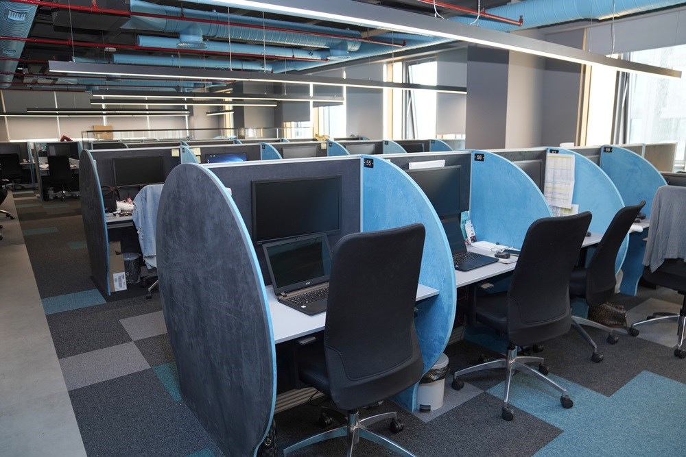 Çağrı merkezi alanı ise, çalışan konforu ve verimliliği ön planda tutularak dizayn edildi. Ses yalıtımı, ergonomik çalışma alanları ve modern bir atmosfer, ekip üyelerinin daha verimli ve konforlu bir ortamda çalışmasını sağlıyor. Klinik ile hastalar arasındaki iletişimi en iyi şekilde destekleyen bu alan, kurumsal kimlikle uyumlu ve profesyonel bir işleyiş sunuyor.