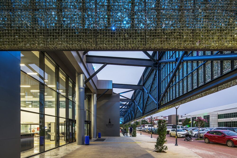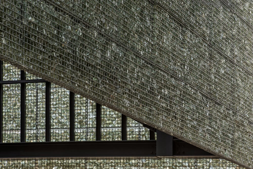 Binayı saran kabuk, yarattığı mekansal ve strüktürel zıtlıklarla hayata geçirilmiş özel bir tasarım yaklaşımına sahip. Yapının bulunduğu alanda, arazi düzenlemesi için yapılan ilkel taş duvarlardan esinlenilen kabuk, taş duvarların yeni bir yorumu olarak düşünülmüş.Bütünlüklü görüntüsüne rağmen binlerce küçük parçadan oluşan kabuk, ağır görüntüsüne rağmen yere basmadan yukardan asılı olarak havada kalmakta. Tasarımıyla iç mekana sızan ışığın ve yansımaların yarattığı tekrarlanamaz ve tasarlanmaz atmosfere ulaşmak amacıyla şeffaf tasarlanan kabuk opak bir görüntüye sahip. Işığın kabuktan filtre edilerek iç mekana alınması, yapı kabuğundaki boşlukların konumu, büyüklüğü ve rastgeleliği ile yaratılan aydınlık etki ve ışık gölge oyunları, yapının deneyimlenmesini eşsizleştirmekte.