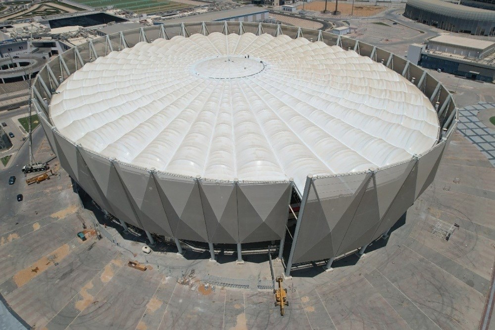 Multisports Hall, New Cairo Administrative City; mimari estetik, mühendislik zekası ve toplumsal vizyonun kesiştiği noktada yükselen bir yapı. USKON’un bu projedeki katkısı, yalnızca taşıyıcı sistem üretmek değil; mimari fikrin cesaretini taşımak, onu görünür kılmak olmuştur.