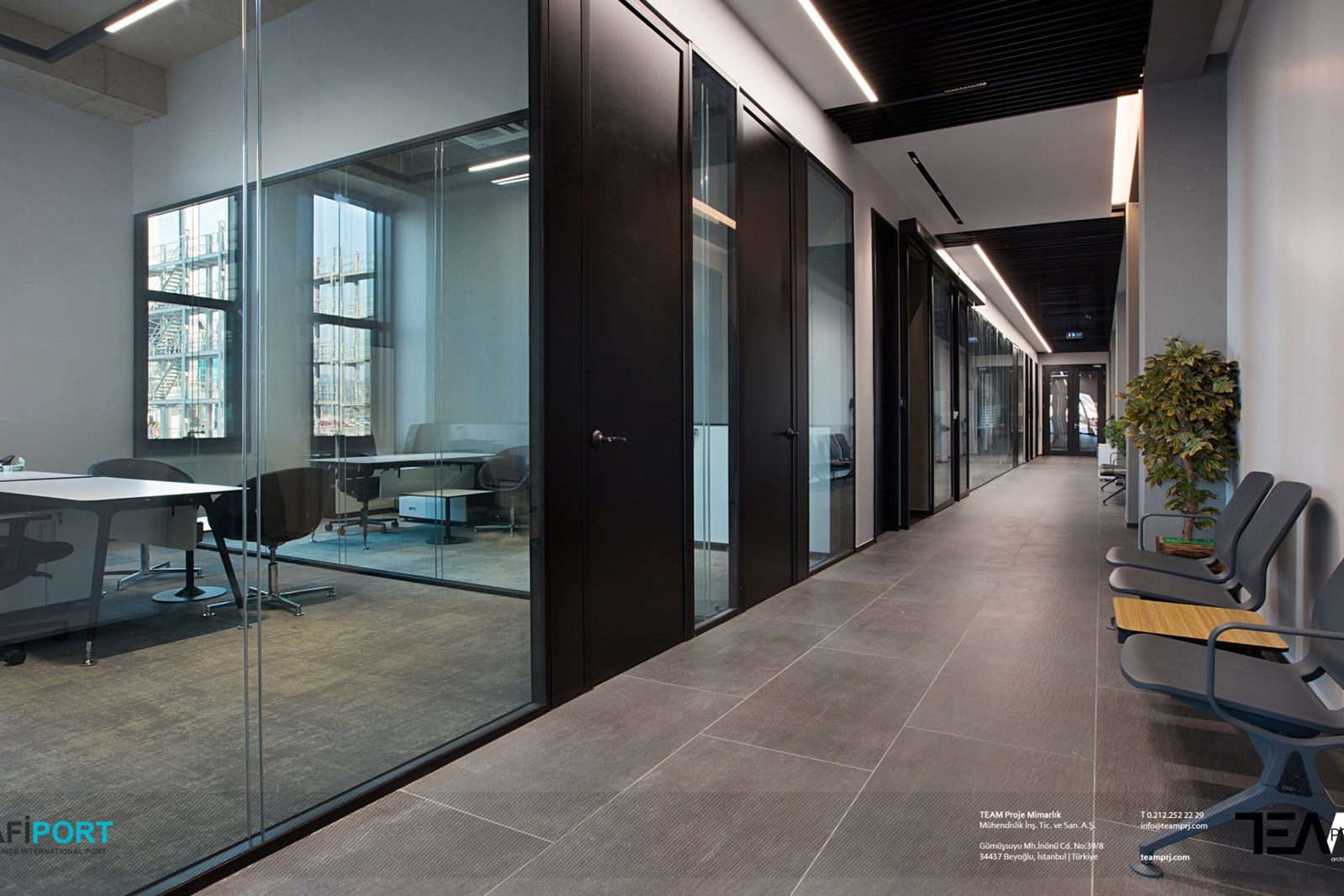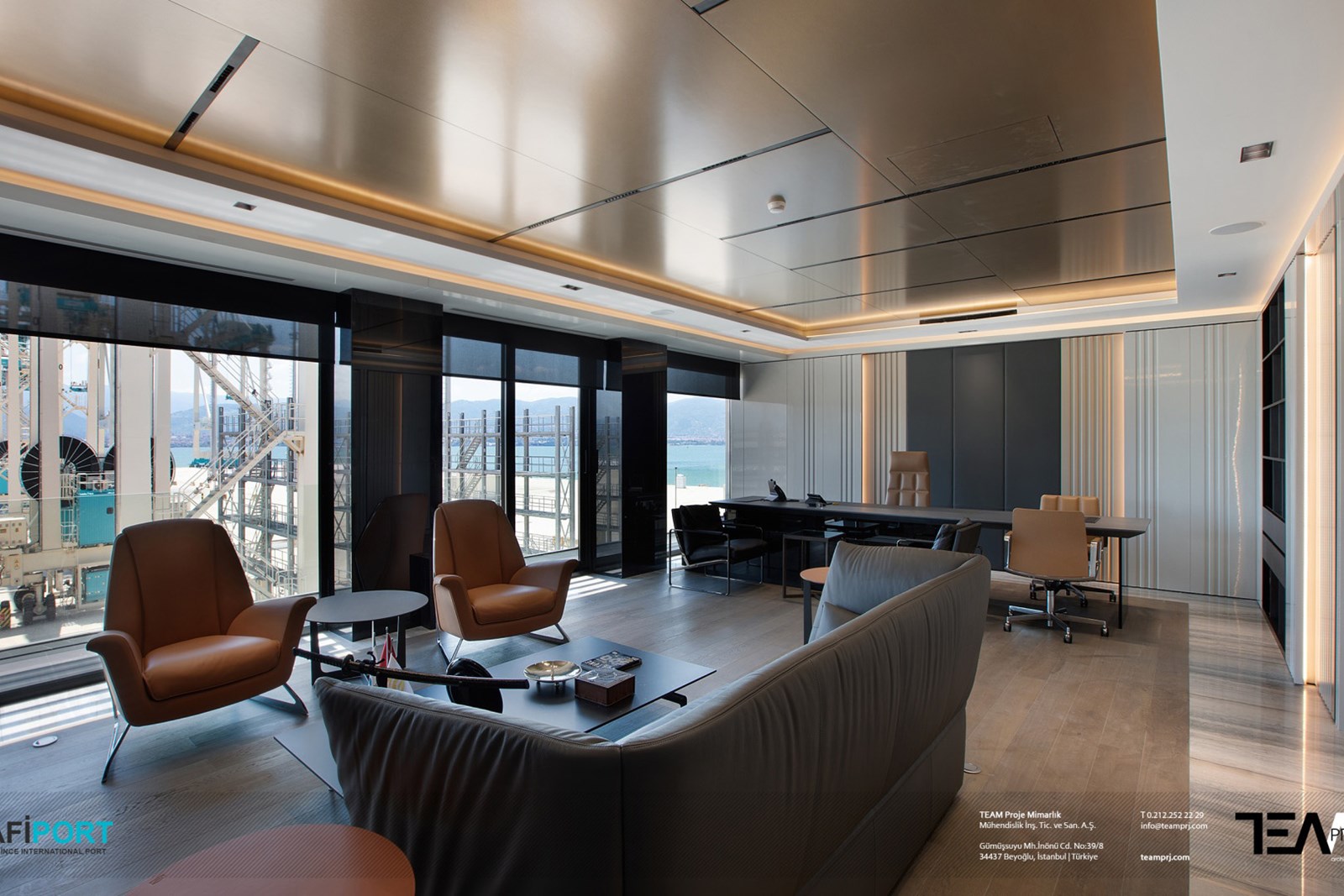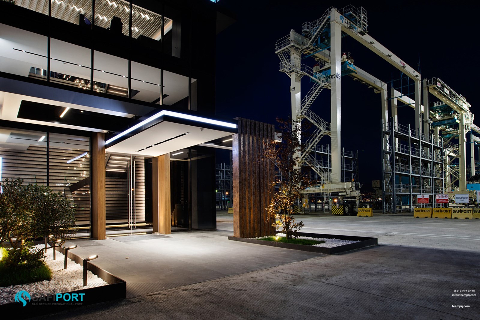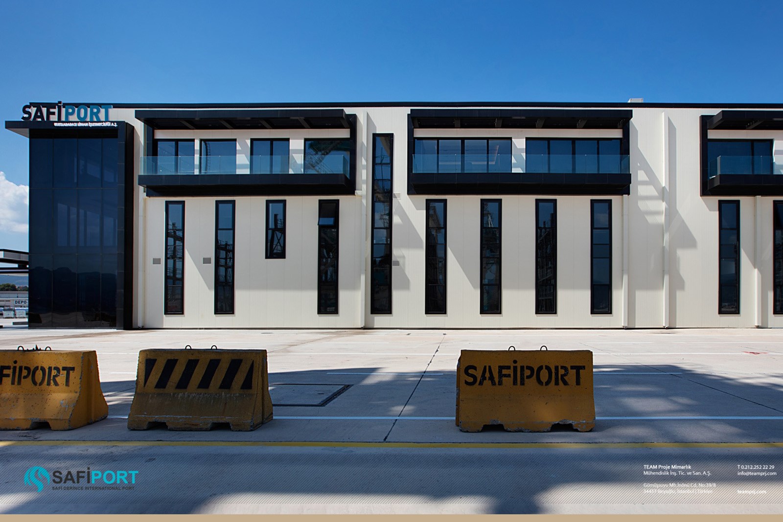 Bu önemli yapı ve saha içinde yer alan ve yeniden yapılanma sürecinde limanın bakım onarım hizmetleri ile liman personellerine ve yönetim ekibine hizmet vermesi için hayata geçirilen “SAFİPORT Bakım Onarım Binası ve Yönetim Ofisi”nin tasarım, projelendirmesi ve anahtar teslim uygulaması TEAM Proje Mimarlık ekibi tarafından yapılmıştır.