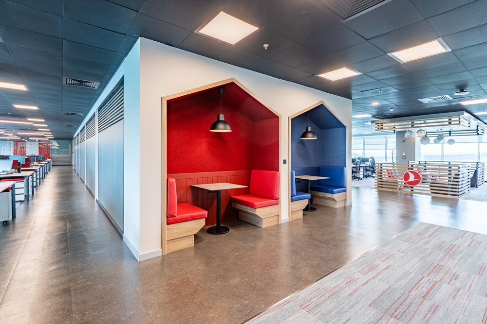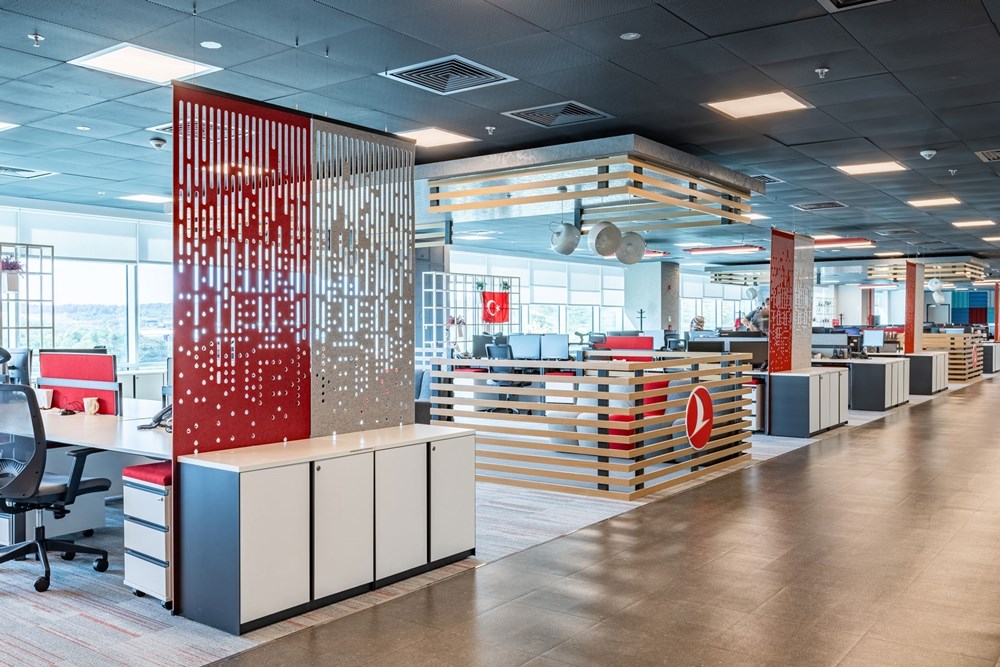 İstanbul Havalimanı'ndaki Türk Hava Yolları Operasyon Merkezi'nde, Feltouch tasarımları açık çalışma alanları, yemek alanları ve sosyal alanlarda kullanılmıştır. İç tasarımda, Türk Hava Yolları'nın kurumsal renklerine öncelik verilmiş olup, dekoratif, akustik ve aydınlatma çözümleri sunulmuştur. Havacılık operasyonlarının 7/24 yürütüldüğü bu merkezde, Feltouch tasarımları, tüm kritik süreçlerin titizlikle yönetilmesine katkı sağlamaktadır.