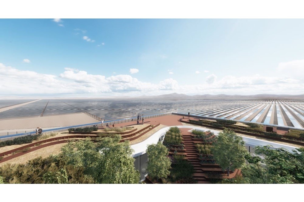 Yapı saçak kotuna çıkan merdivenler aracılığı ile de, 20 milyon metrekare üzerine kurulan güneş enerjisi santralinin ufuk çizgisine kadar uzanan panoramik manzarası deneyimlenebilmektedir.