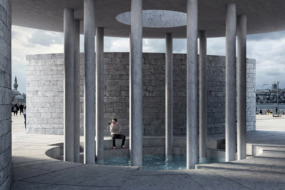 Sebil, Üsküdar kıyısında kentsel kamusal mekanın merkezinde, yağmur hasadı yaparak suyu arıtan ve devirdaim ile üç yönde kesme yığma taş duvarlar üzerinde toplam dokuz çörten ile suyu halkın kullanımına açan küçük ölçekli bir yapı önerisidir. Saçağı taşıyan oniki kolonun ve biriktirme havuzunun ışıkla buluşan merkezi mekânı meydan hayatından saklayarak bir nefes alma ve dinlenme alanı üreten yapı, aynı zamanda kıyıdaki gündelik akışa katılan geçirgen bir iç mekân kurmaktadır. Yapı bir takımada düzeni içinde çevresindeki yağmur toplama havuzları olarak kullanılan bisiklet, kaykay ve paten pistleri ile bir bütünlük oluşturur.