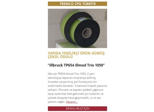 Sızdırmazlık malzemeleri, izolasyon ve yapıştırıcılardan pasif yangın korumasına, yer kaplamasından su yalıtımı ve çatı kaplama çözümlerine kadar her türlü ihtiyaca cevap verebilen geniş ürün yelpazesi ile Tremco CPG, günümüzde mimarların, müteahhitlerin, planlamacıların ve sahada ustabaşlarının karşılaştığı karmaşık problemlere nokta atışı çözümler sunabilmektedir.